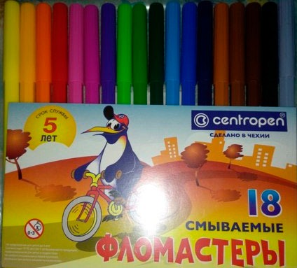 Фломастеры CENTROPEN, 18 цветов, "Пингвины", смываемые, вентилируемый колпачок, полибег, 7790/18