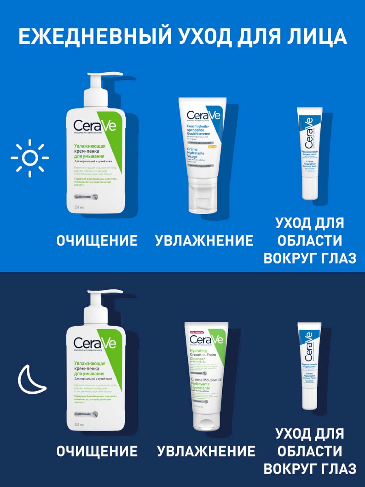 CeraVe Увлажняющая крем-пенка для умывания для нормальной и сухой кожи, 236 мл
