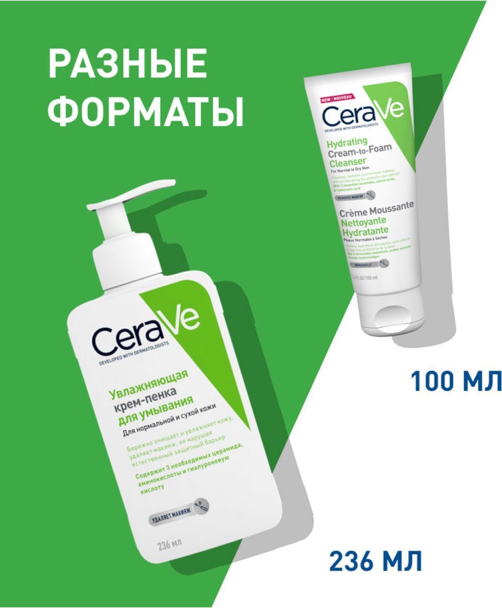 CeraVe Увлажняющая крем-пенка для умывания для нормальной и сухой кожи, 100 мл