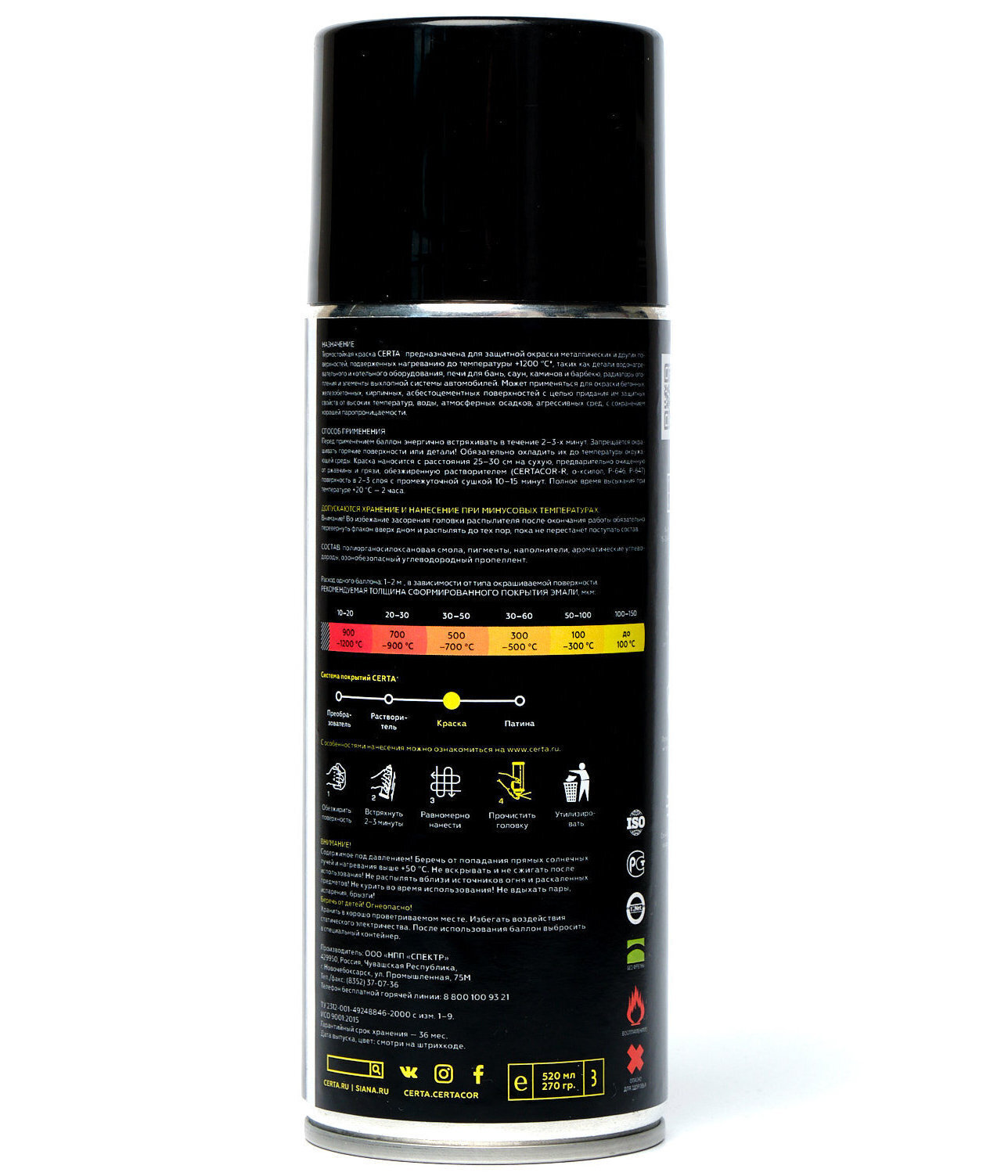 Краска CERTA до +1200°C Термостойкая, до700°, Кремнийорганическая, Матовое покрытие, 0.52 л, 0.4 кг, черный