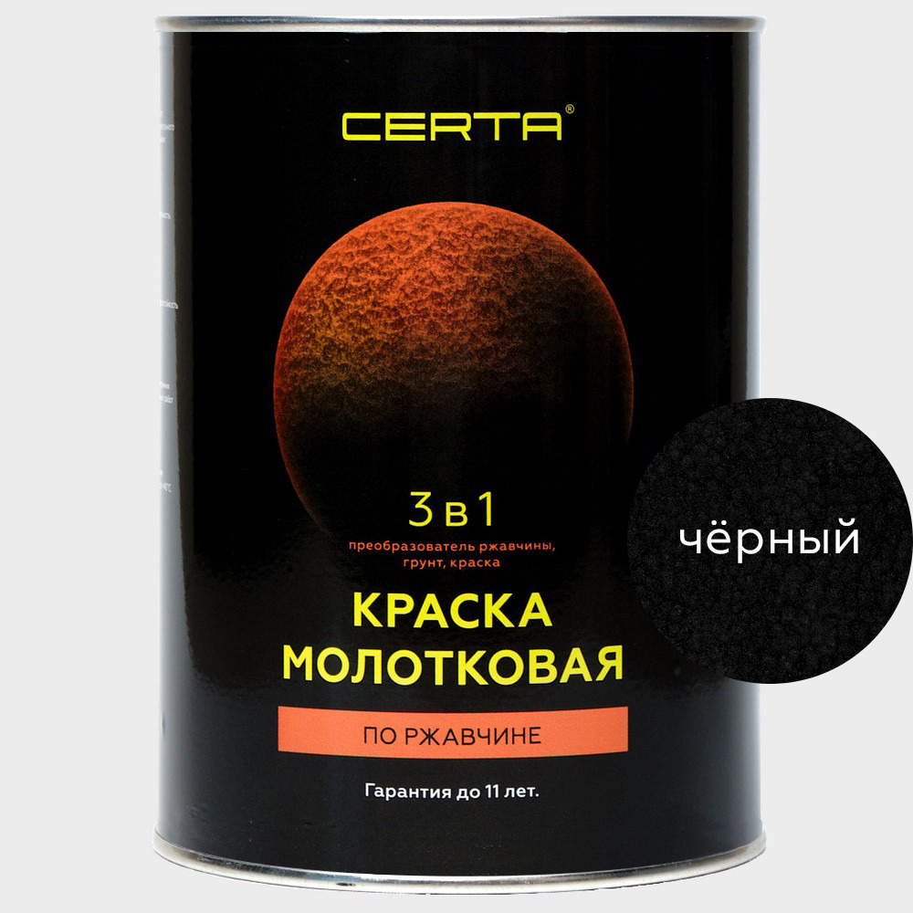 Грунт-эмаль CERTA по ржавчине, 3 в 1 Молотковая, Полуглянцевое покрытие, 0.8 кг, черный