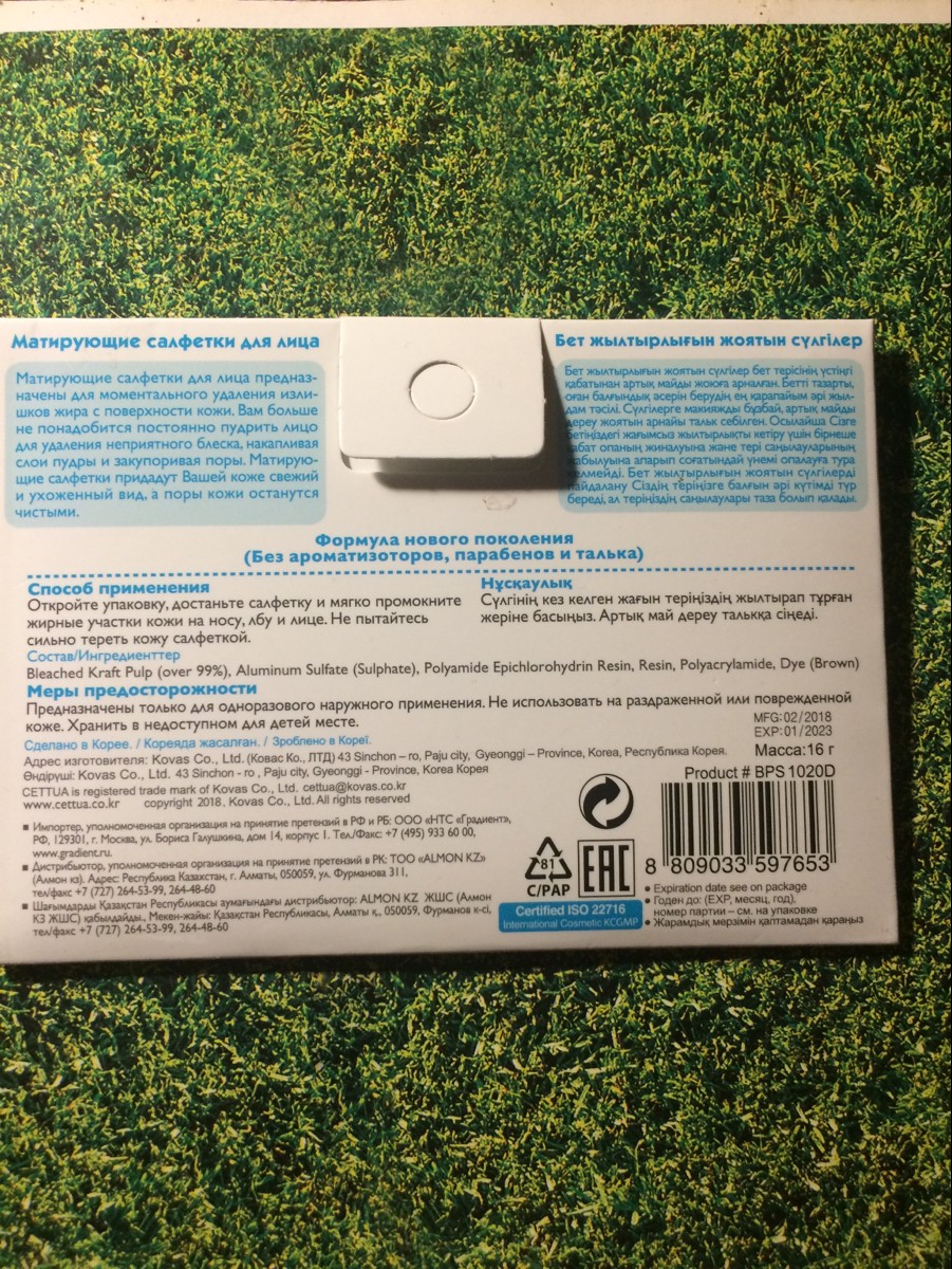 Cettua Матирующие салфетки для лица, 50 салфеток