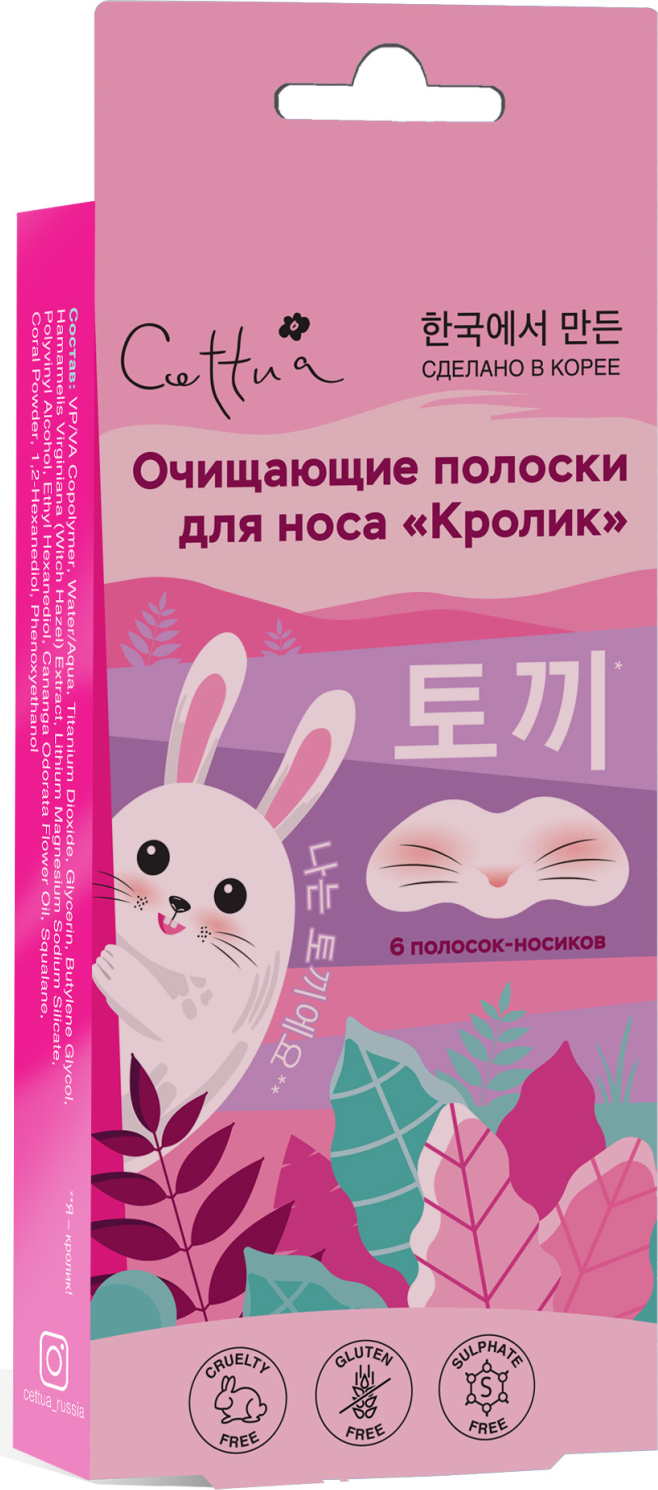 Cettua Pore Care Очищающие Полоски для носа "Кролик", 6 шт