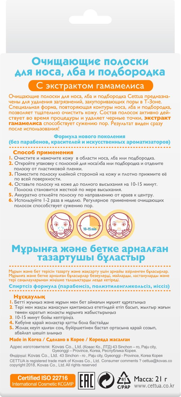 Cettua Очищающие полоски для носа, лба и подбородка, 6 штук