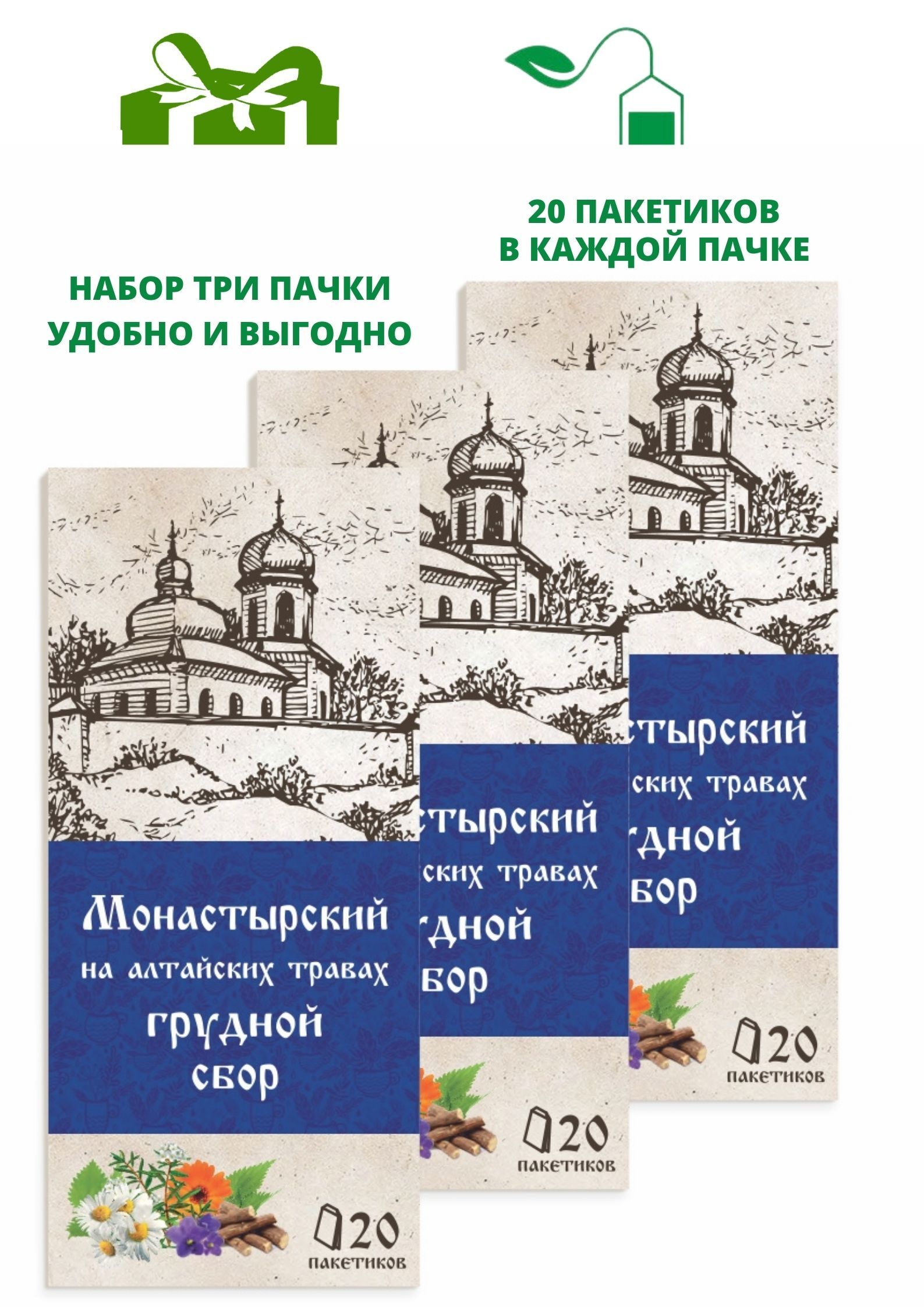 Травяной сбор "Монастырский" на алтайских травах Грудной сбор от кашля (20х1,5гр), 3 пачки