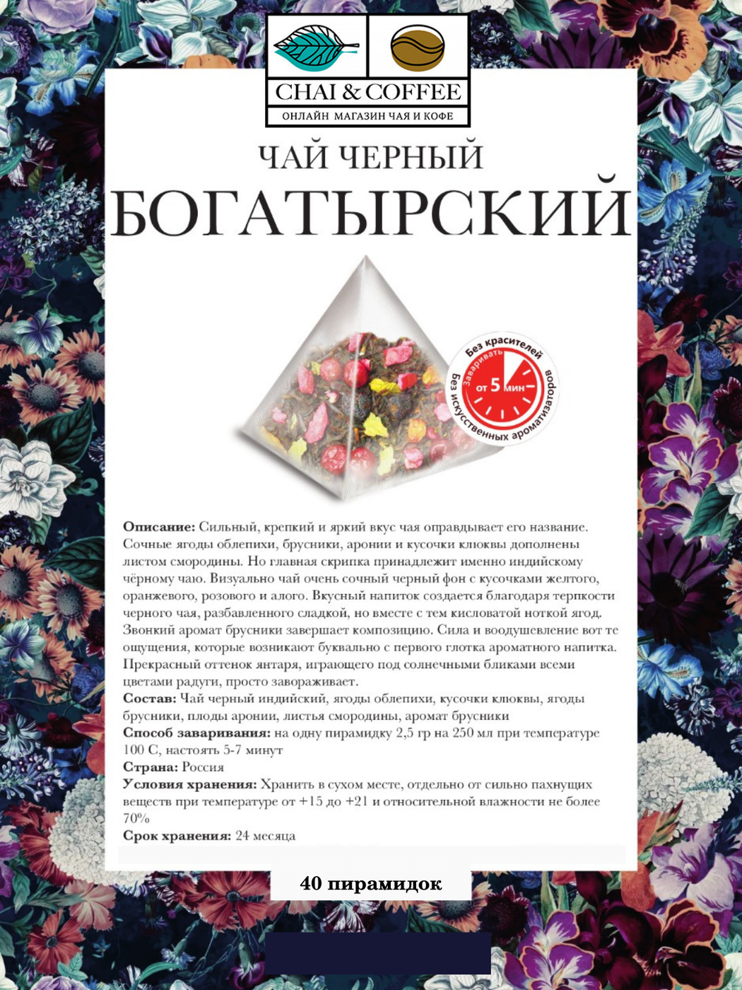 Чай "ТАЁЖНЫЙ СБОР ПРЕМИУМ" CHAI&COFFEE черный листовой в PREMIUM пирамидках 20 шт. Х 2,5 г.