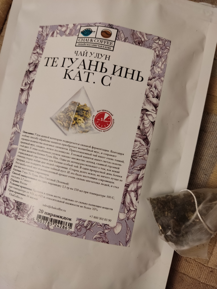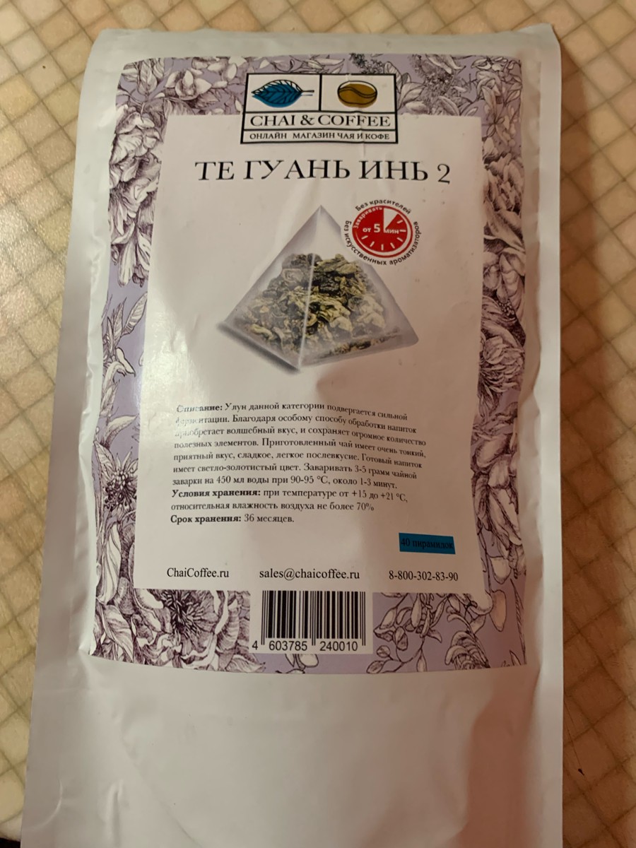 Чай ЭЛИТНЫЙ "УЛУН ТЕ ГУАНЬ ИНЬ" КАТ С. CHAI&COFFEE листовой в PREMIUM пирамидках 20 шт. Х 2,5 г.
