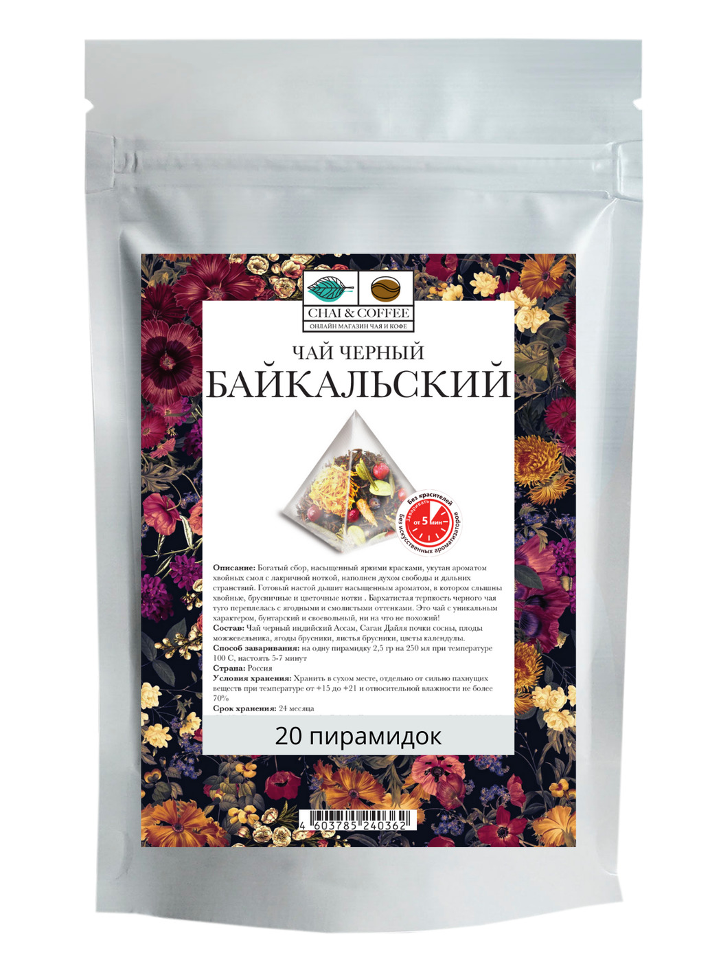 Чай "БАЙКАЛЬСКИЙ" CHAI&COFFEE черный листовой с кусочками ягод в PREMIUM пирамидках 20 шт. Х 2,5 г.