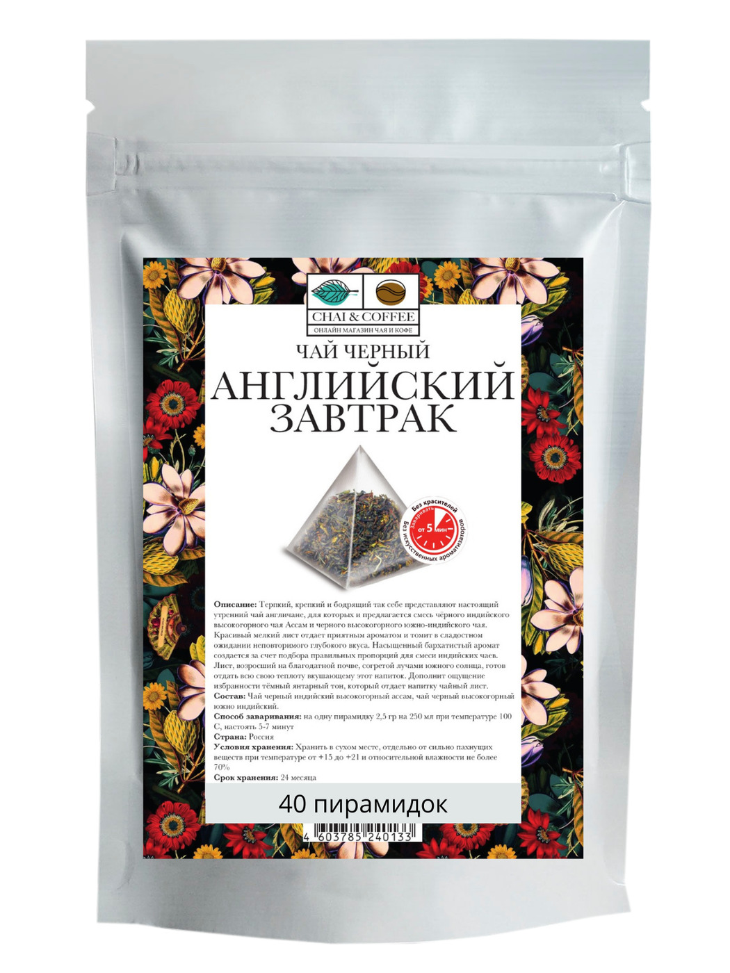 Чай "АНГЛИЙСКИЙ ЗАВТРАК" CHAI&COFFEE листовой черный в PREMIUM пирамидках 40 шт. Х 2,5 г.