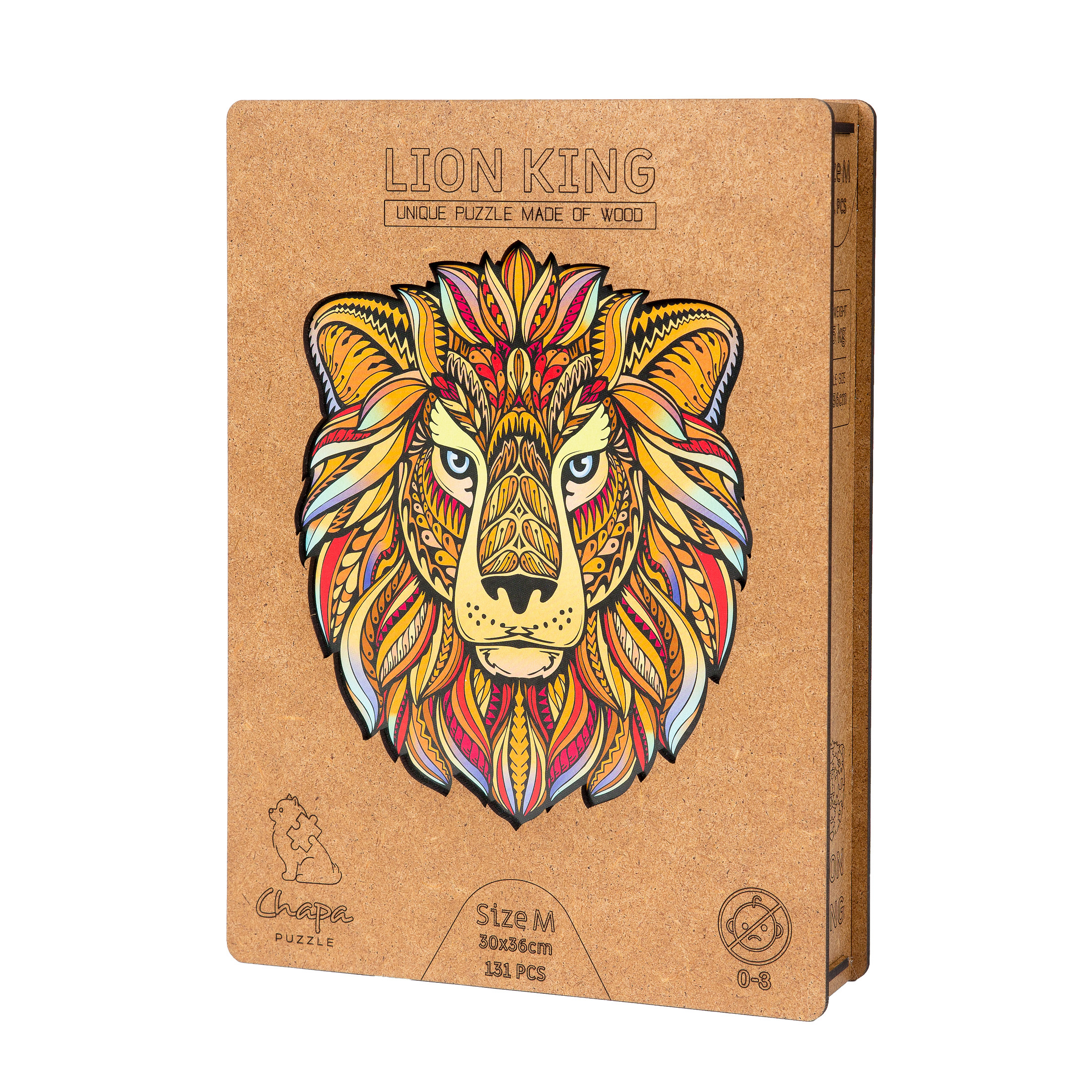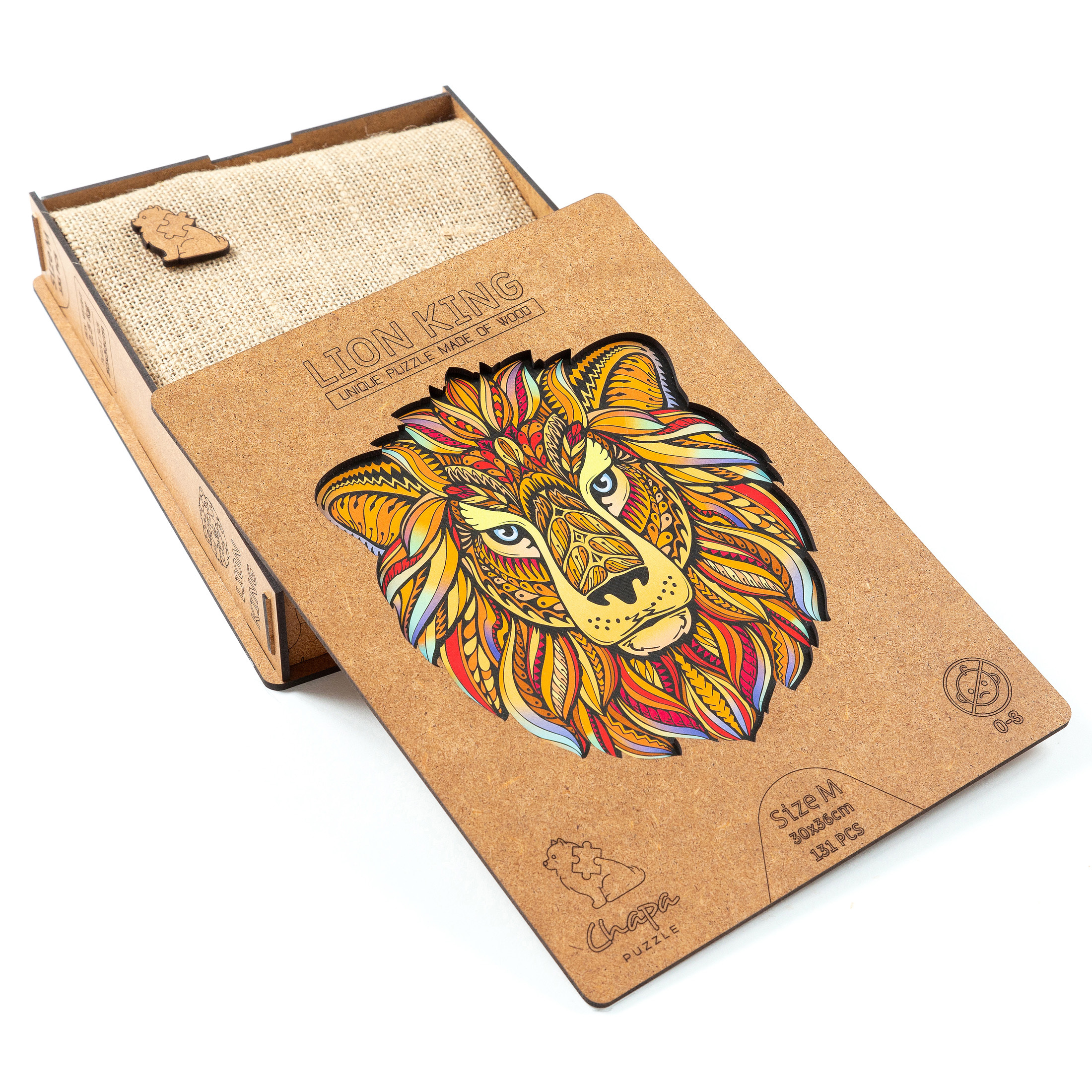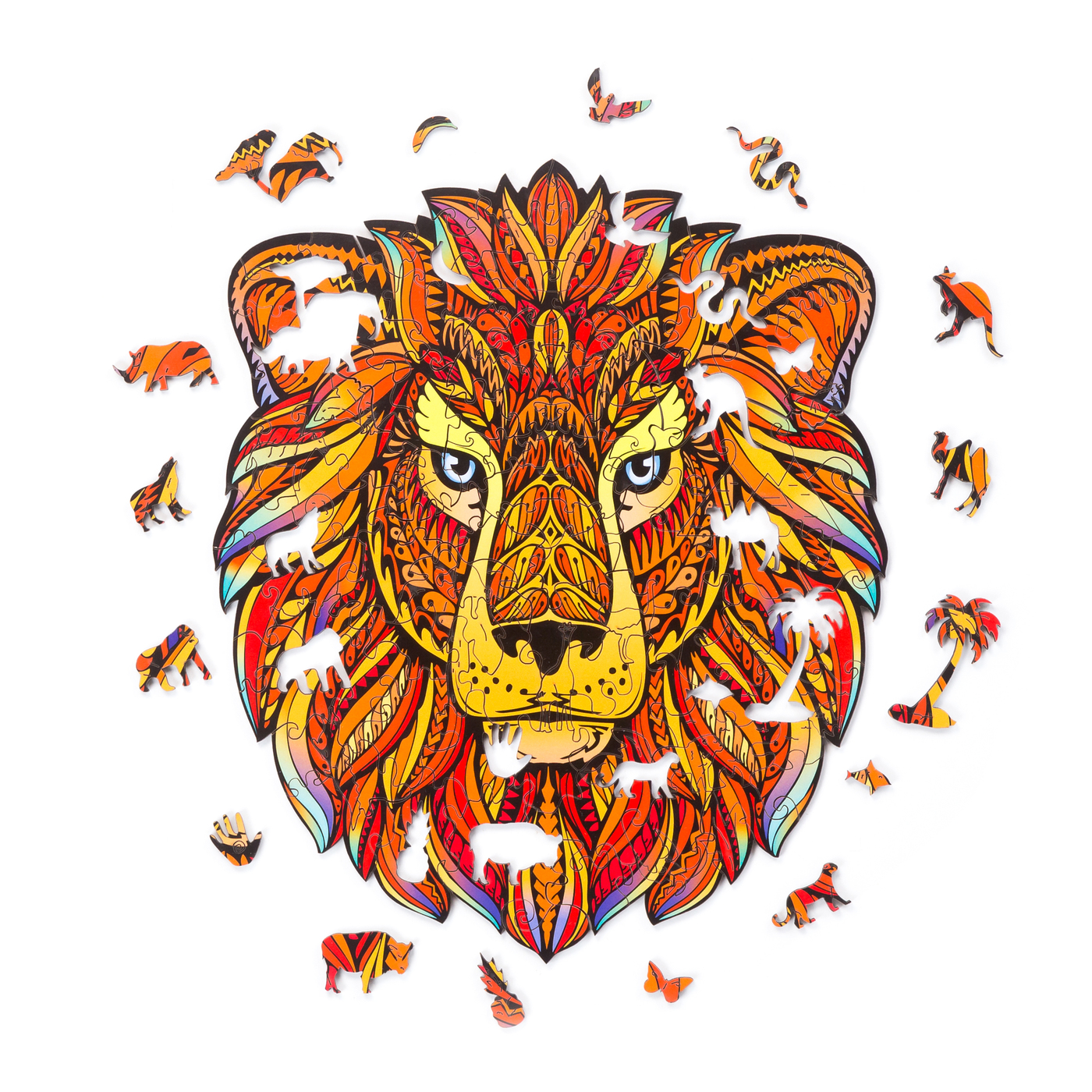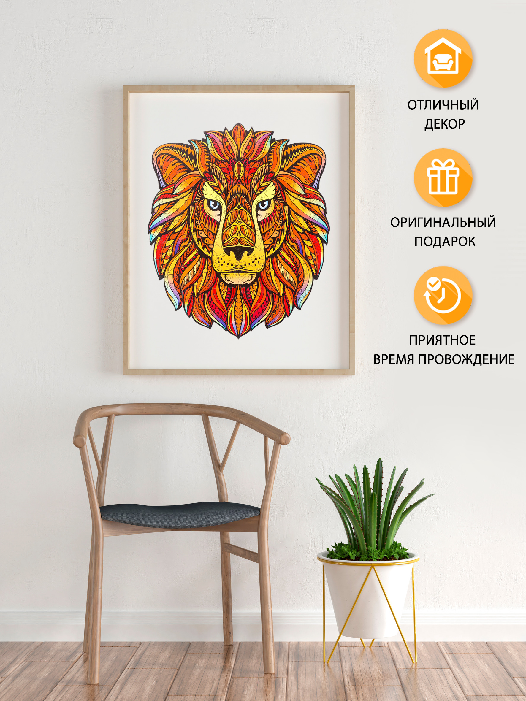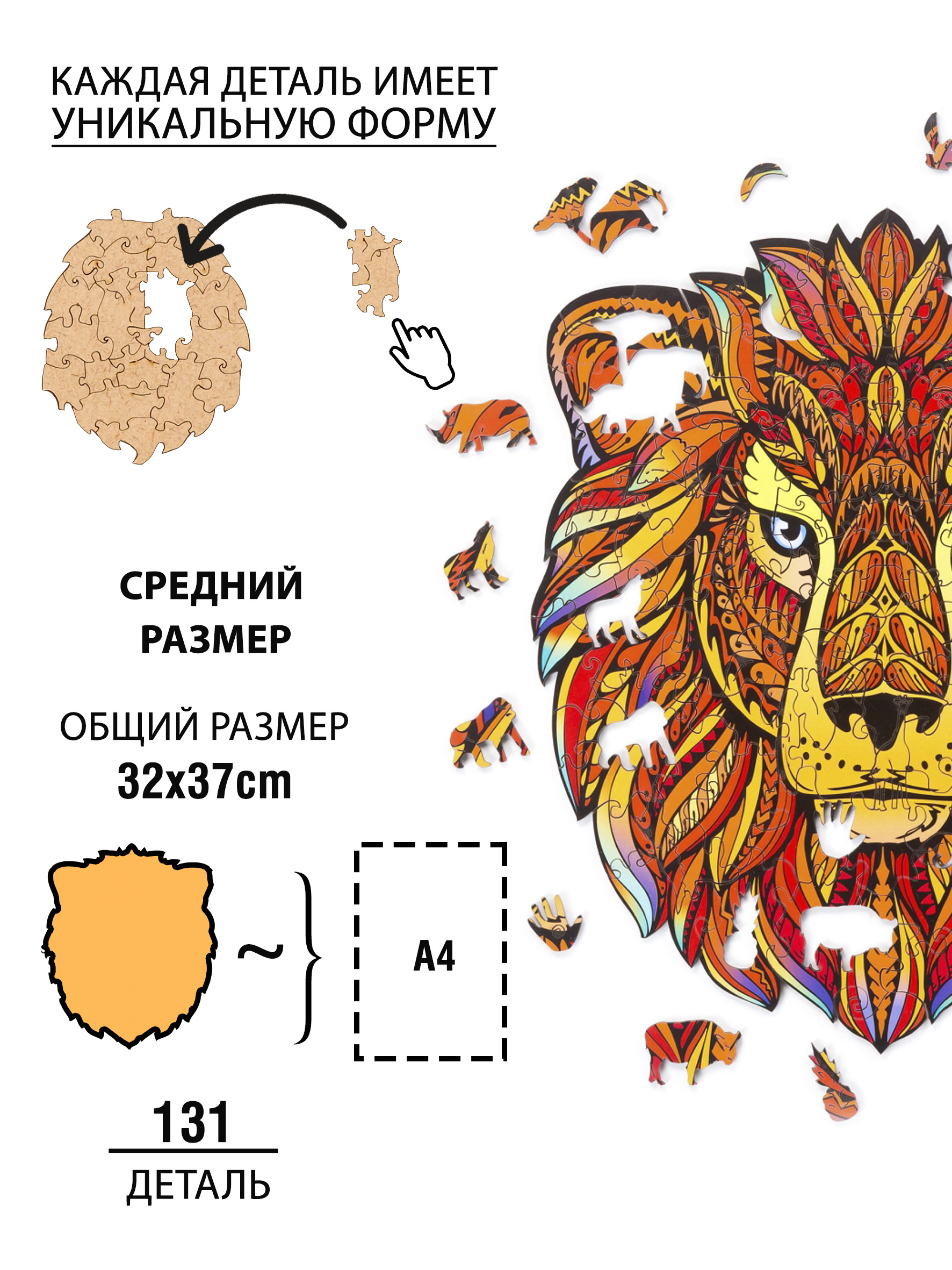 Деревянные пазлы для взрослых и детей / Подарок / Сhapa "Лев" 32х37 см, 131 деталь