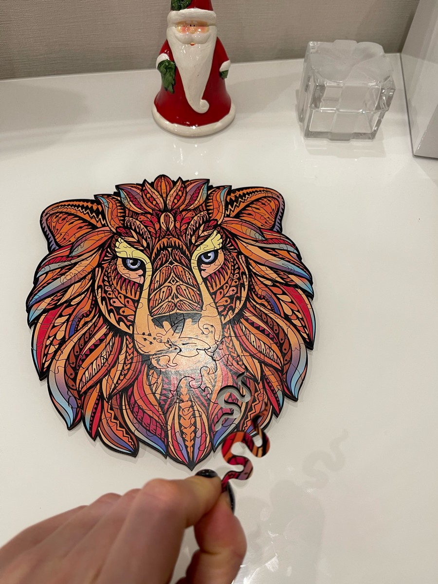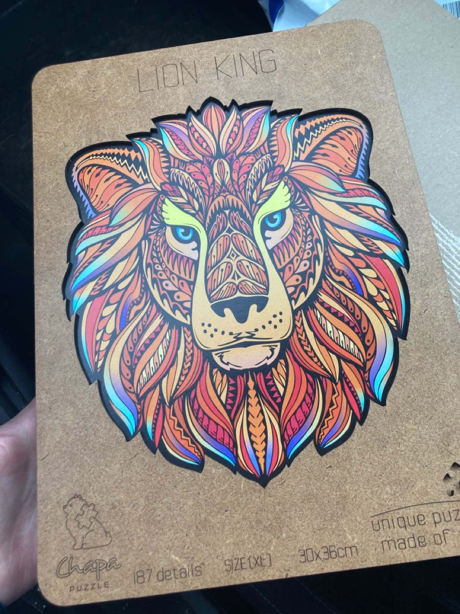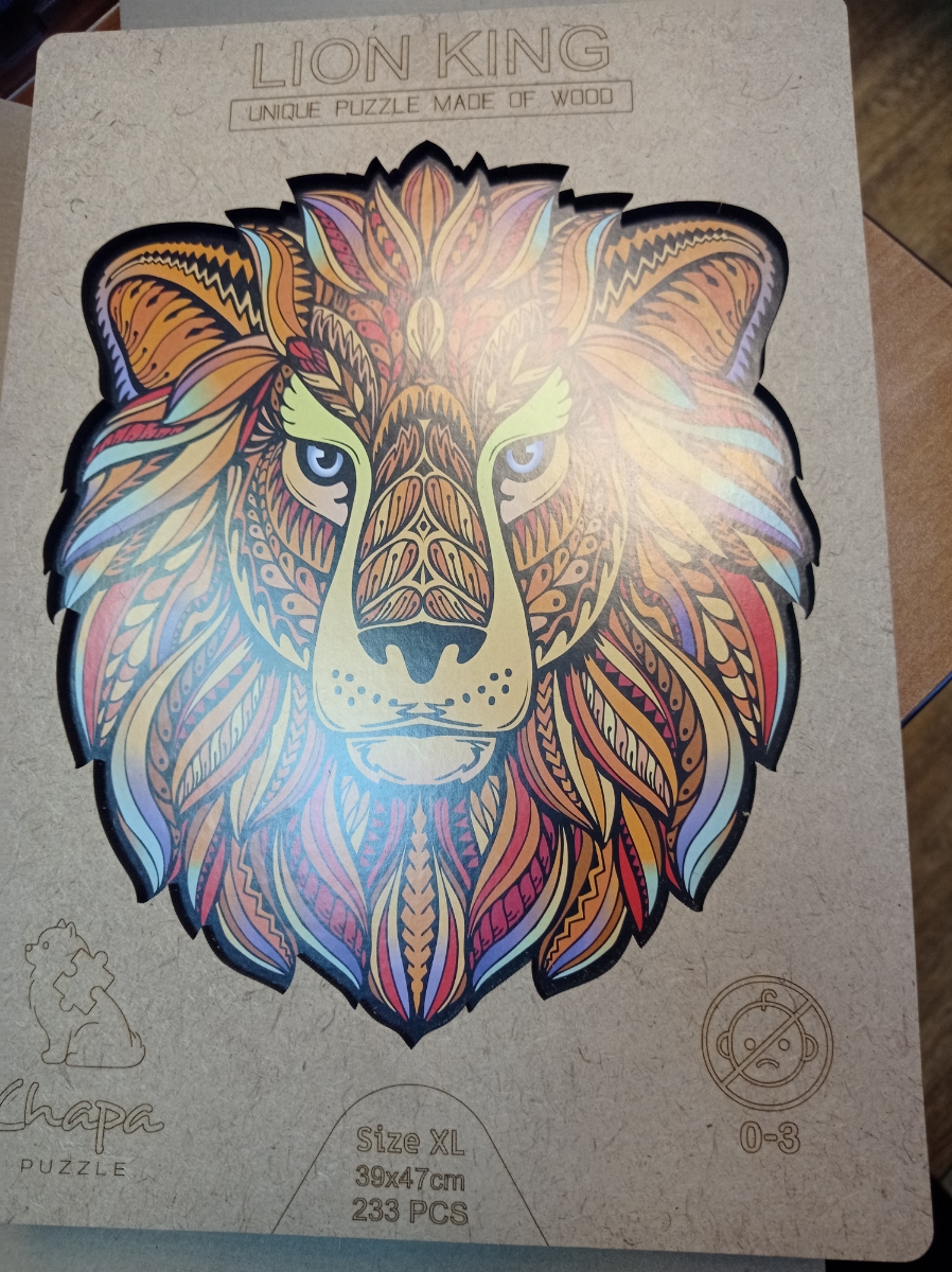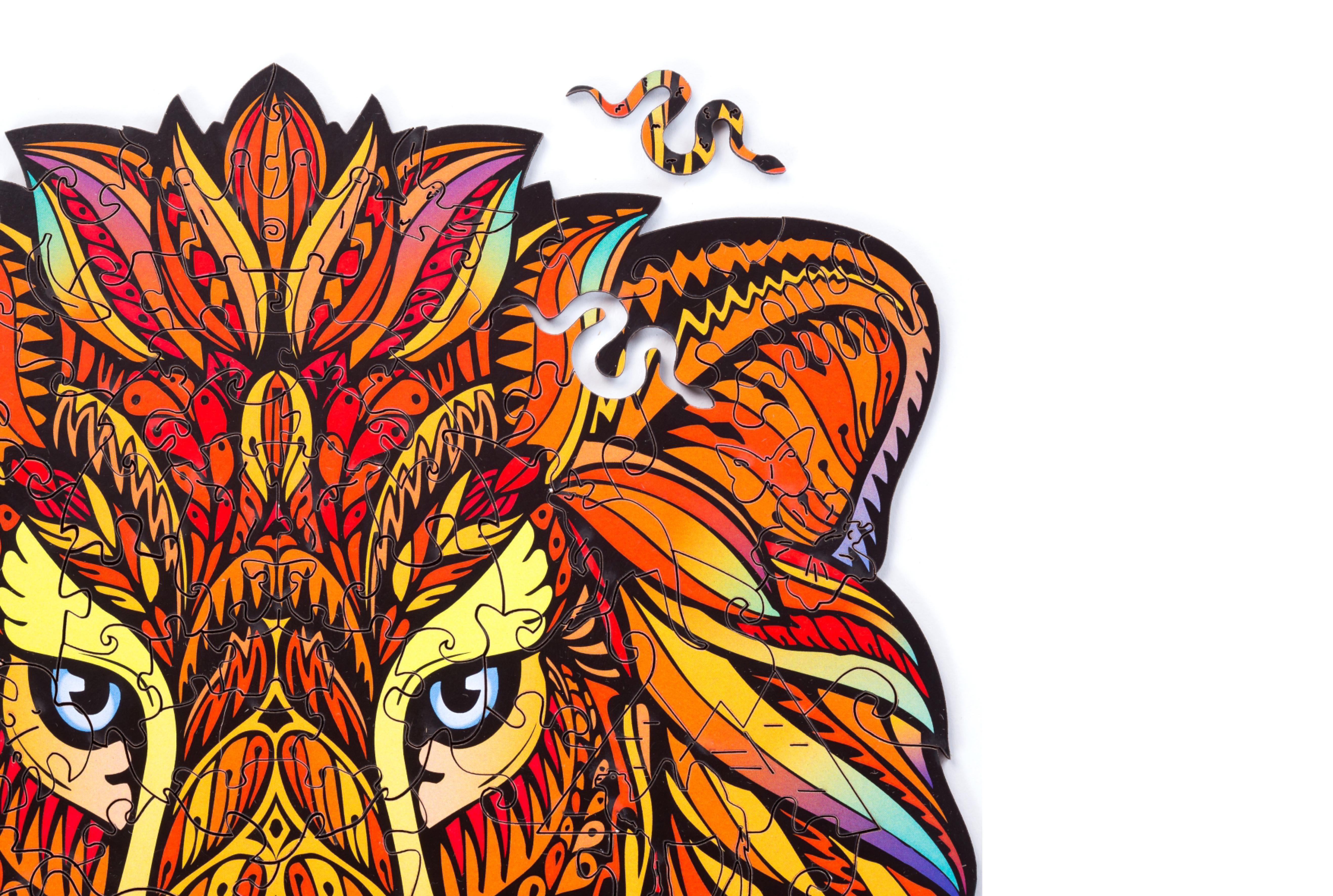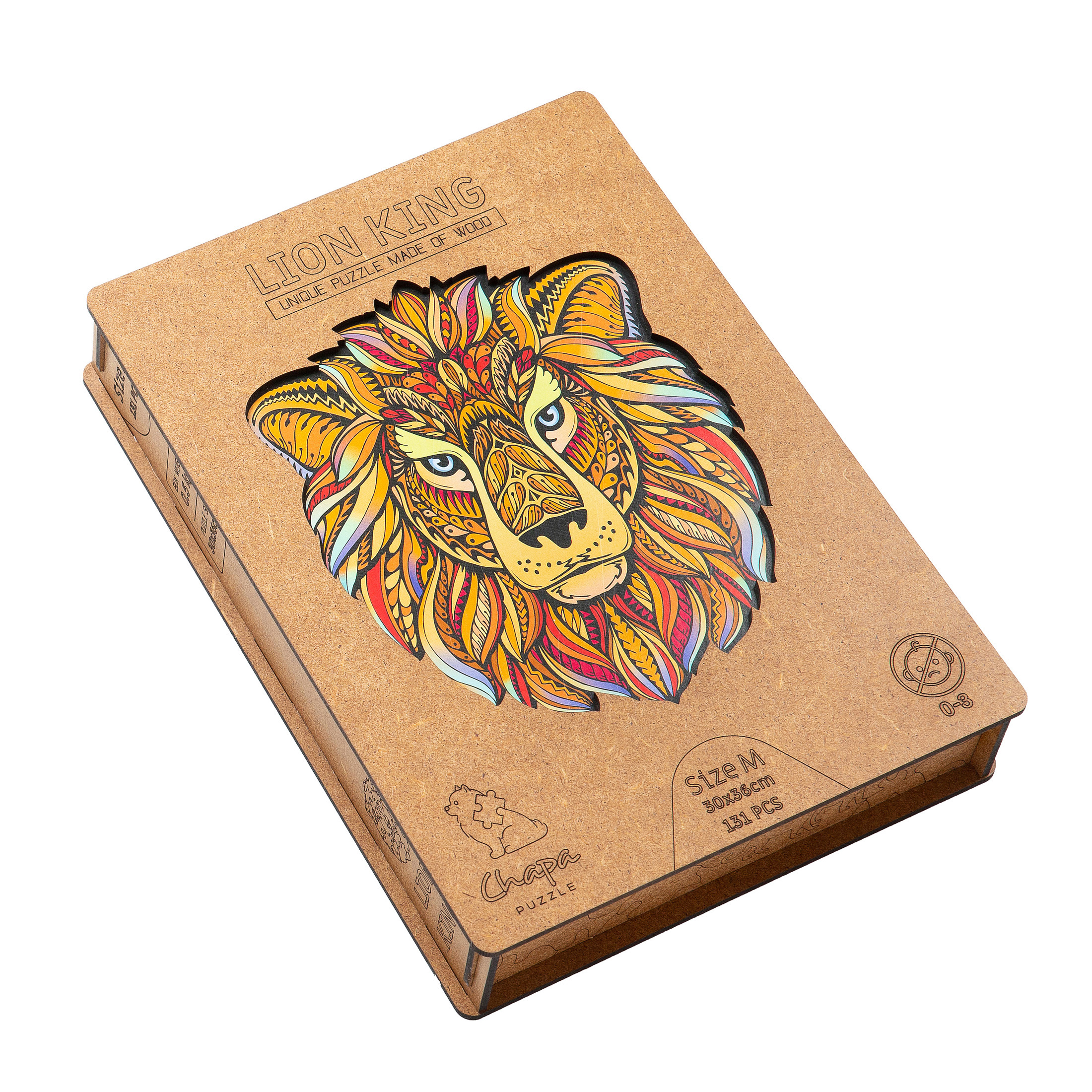 Деревянные пазлы для взрослых и детей / Подарок / Сhapa "Лев" 32х37 см, 131 деталь
