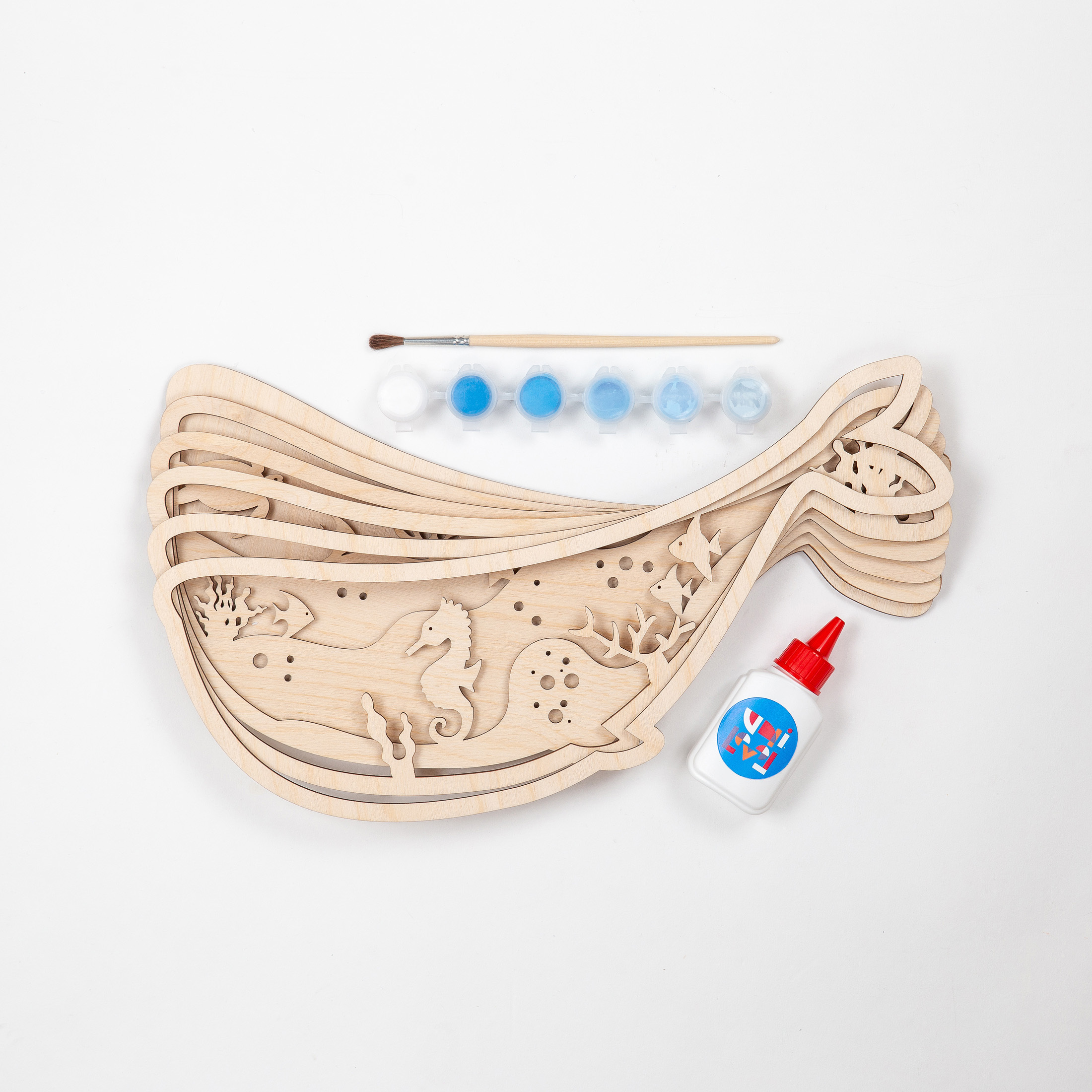 Набор для творчества "Синий кит", набор для рисования, деревянная раскраска, 34х16 см