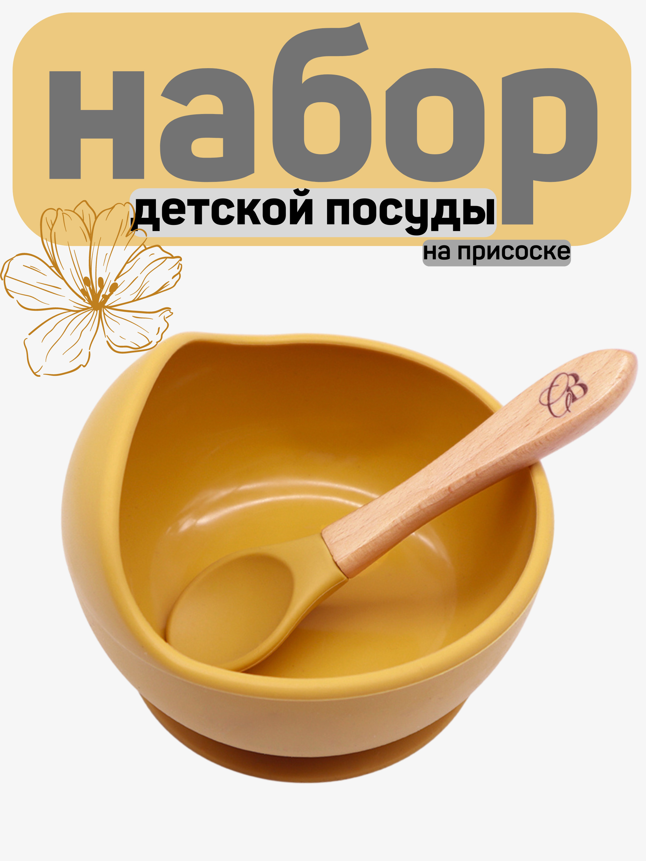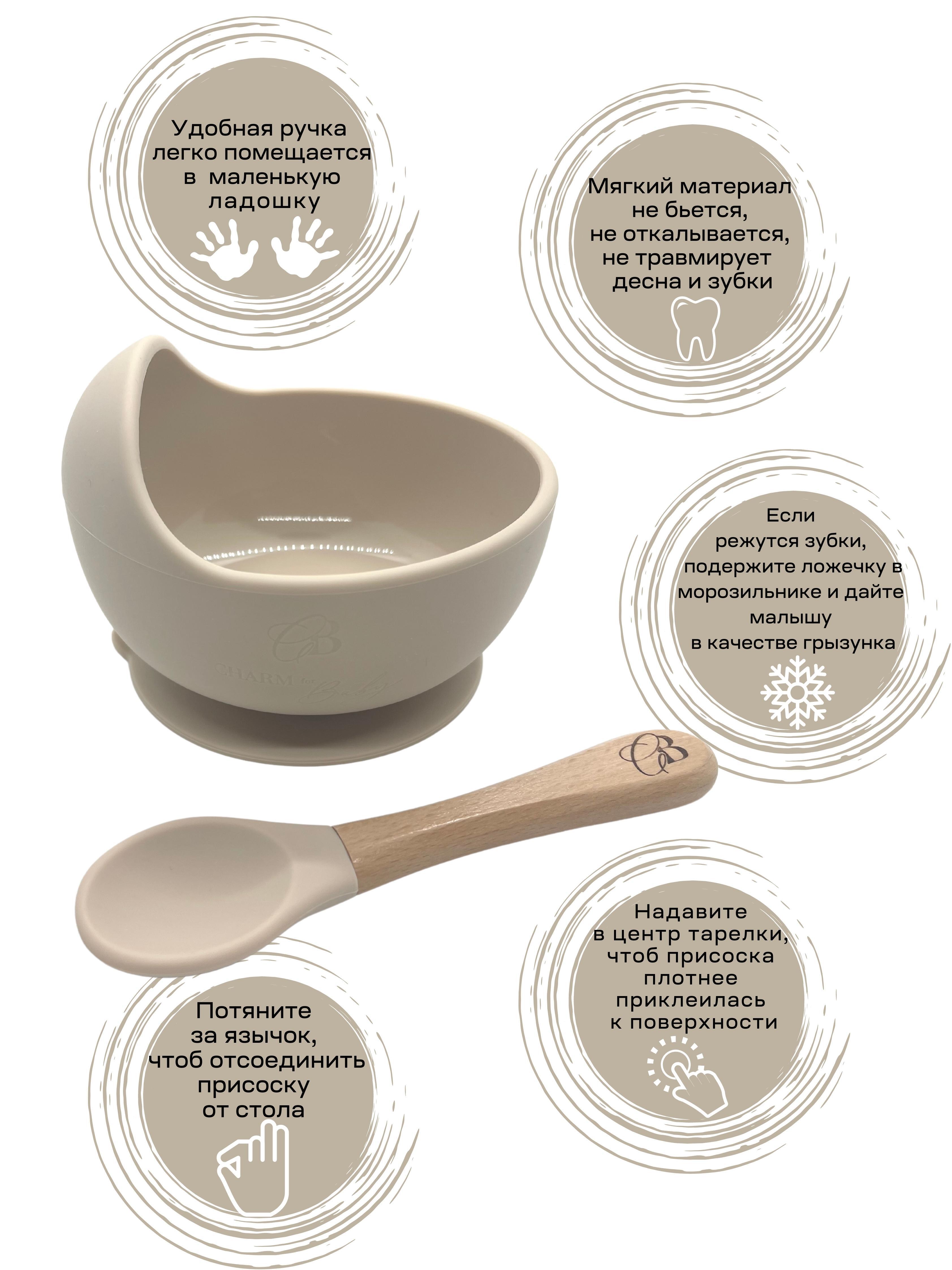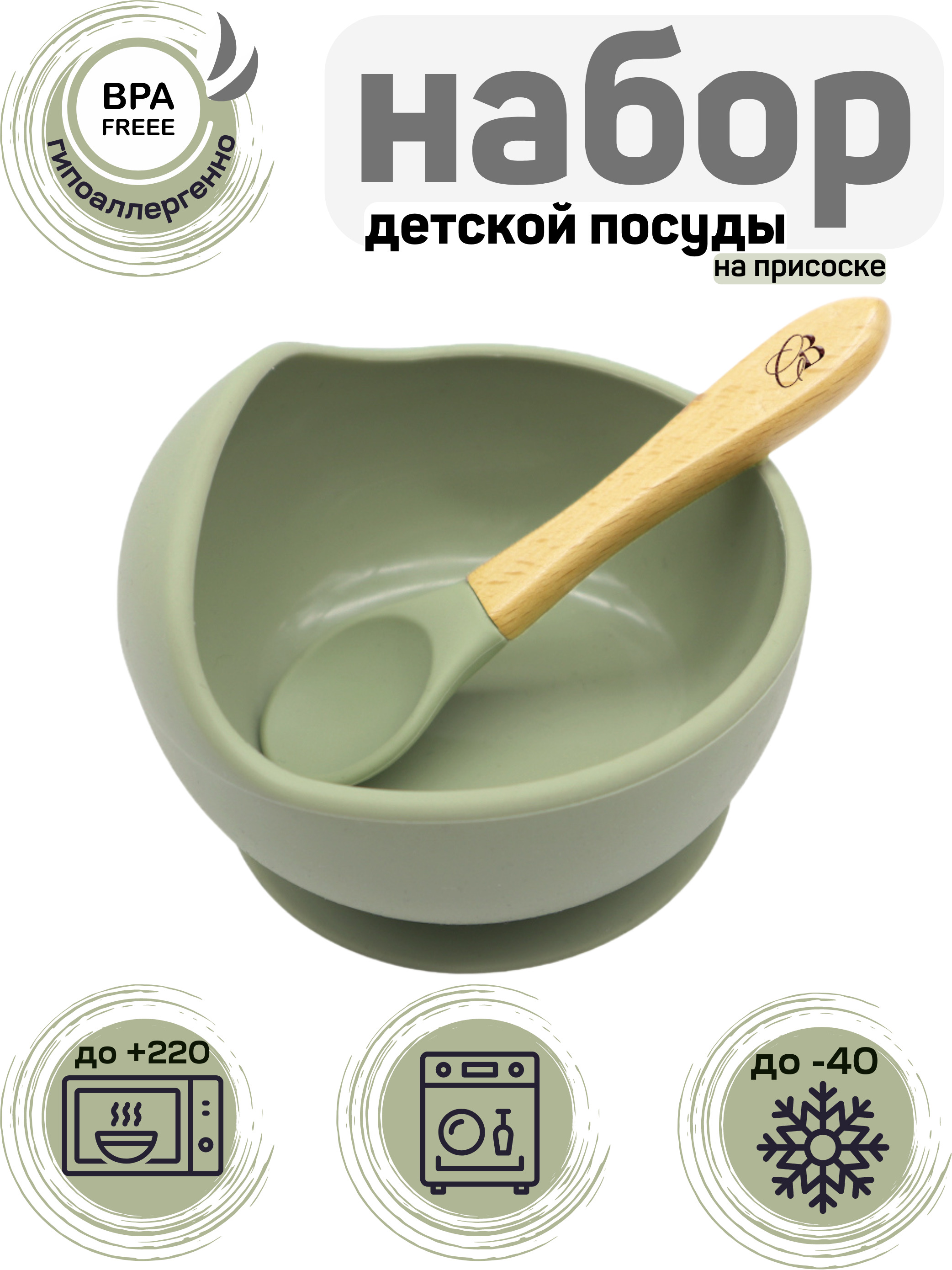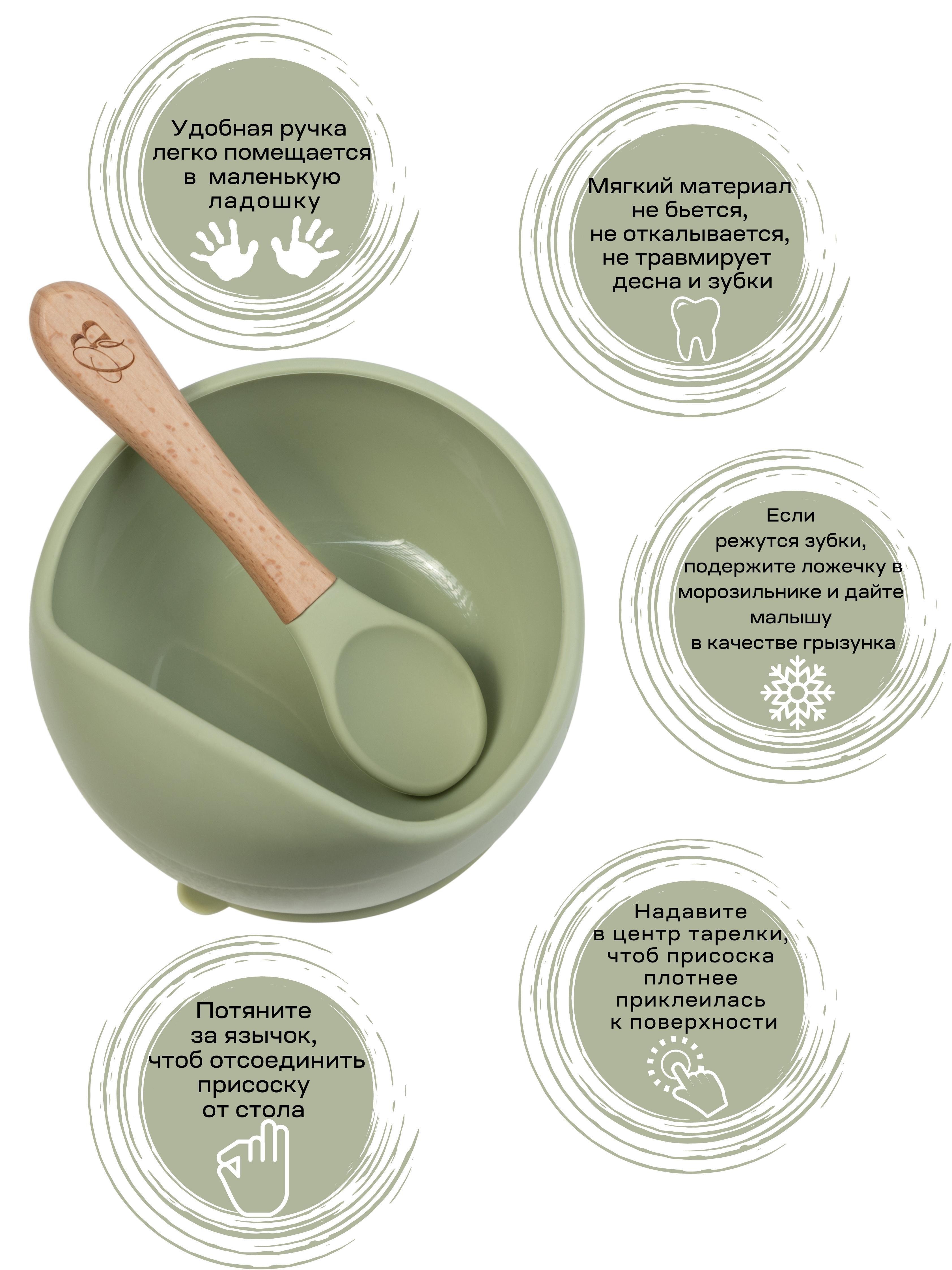 Силиконовая тарелка детская на присоске / Набор для кормления / Ложка для кормления / детская посуда