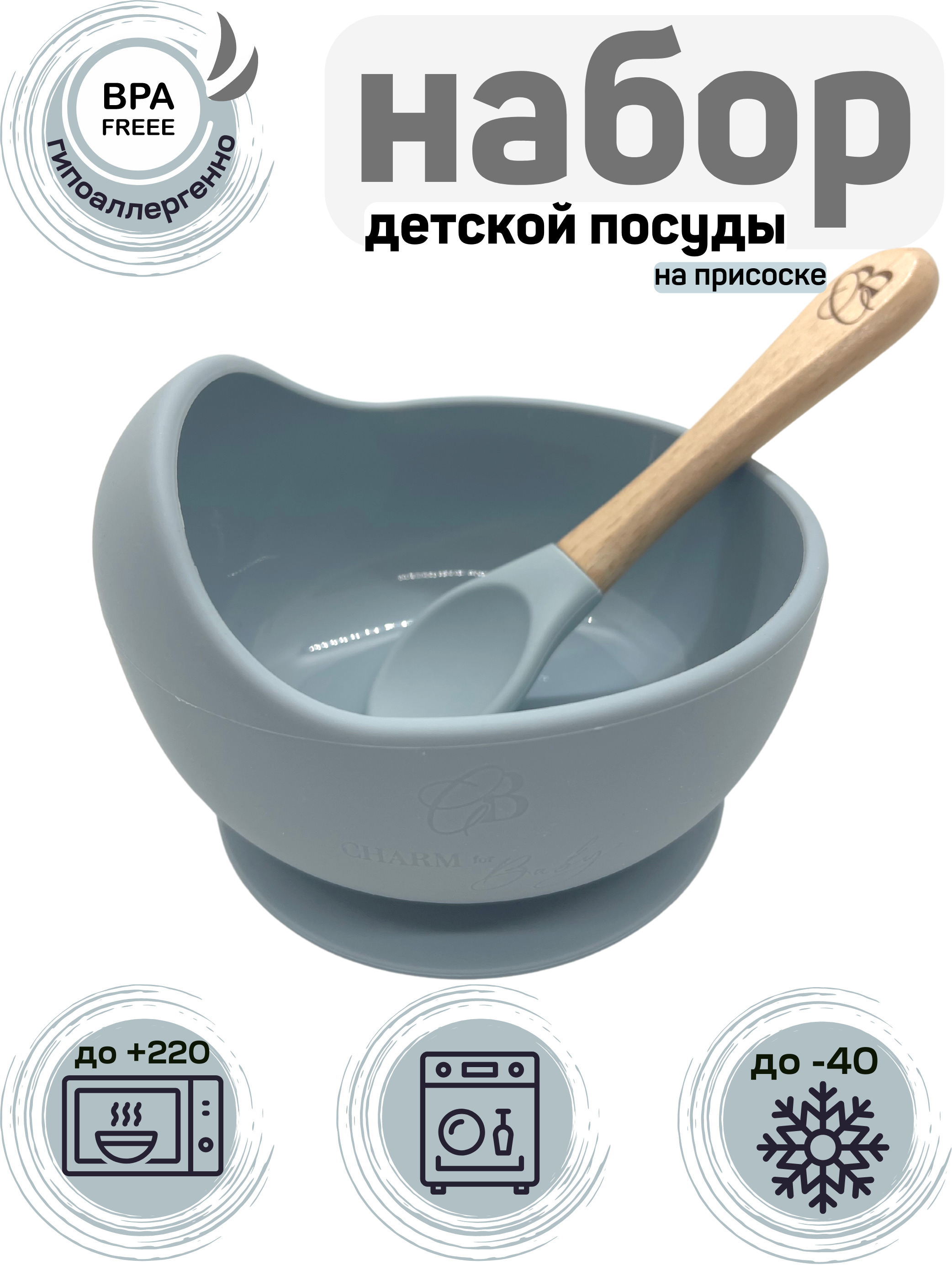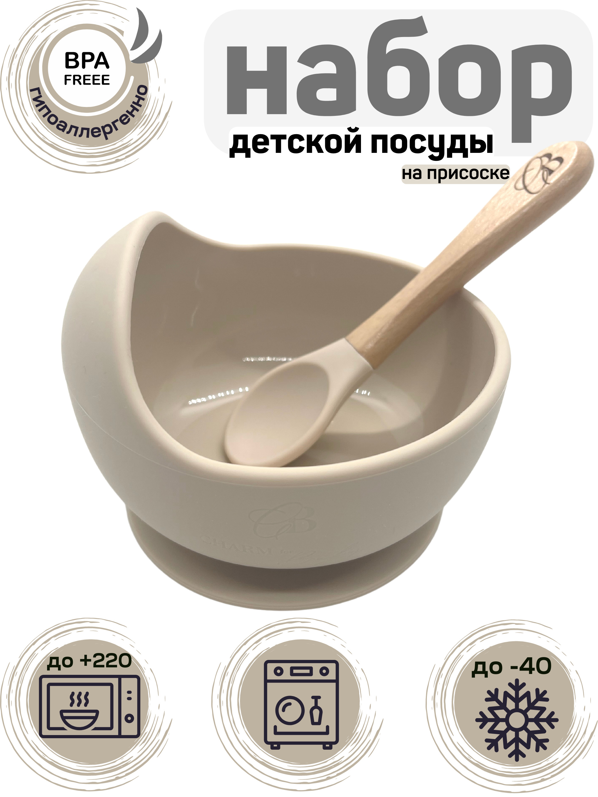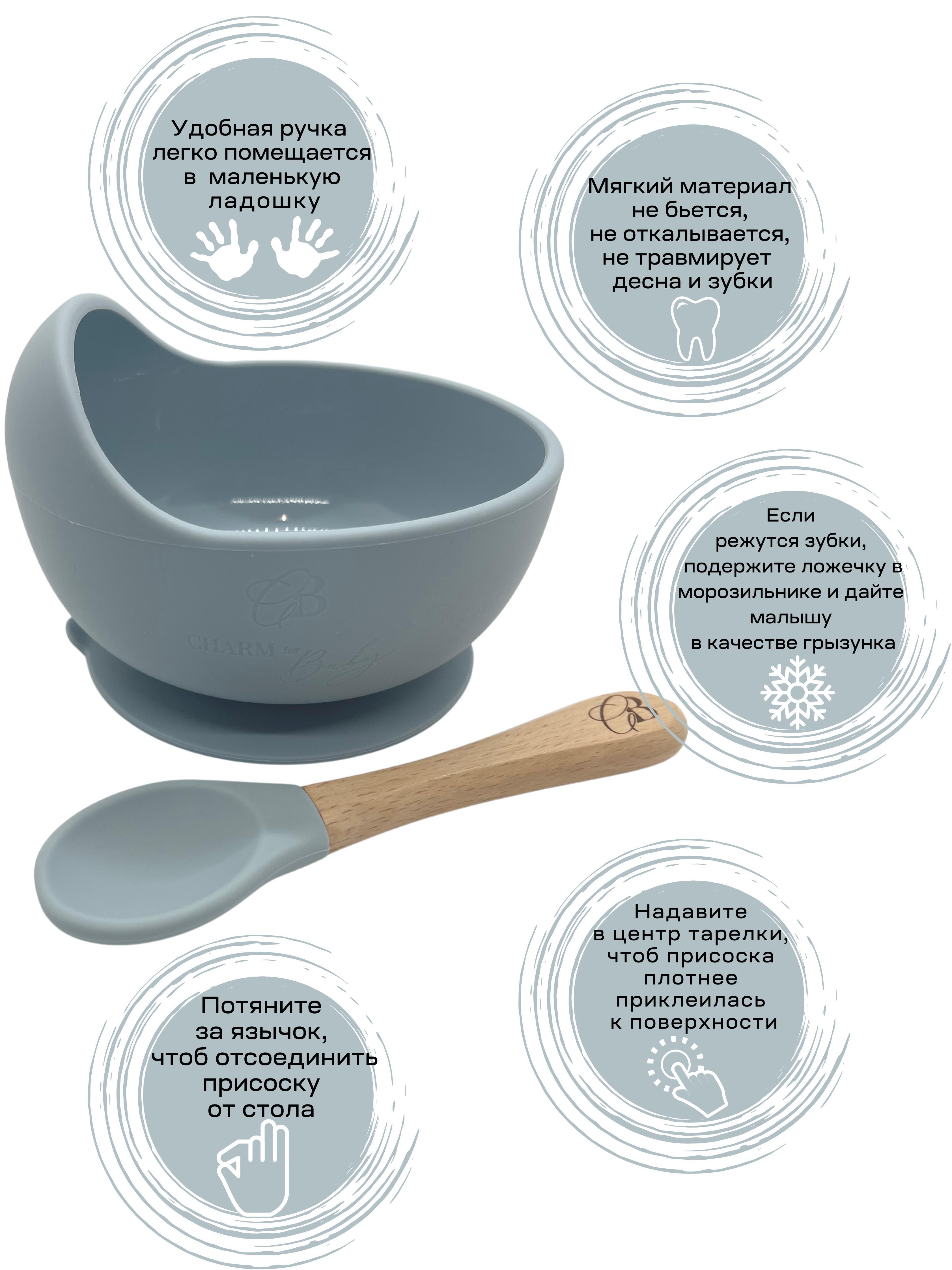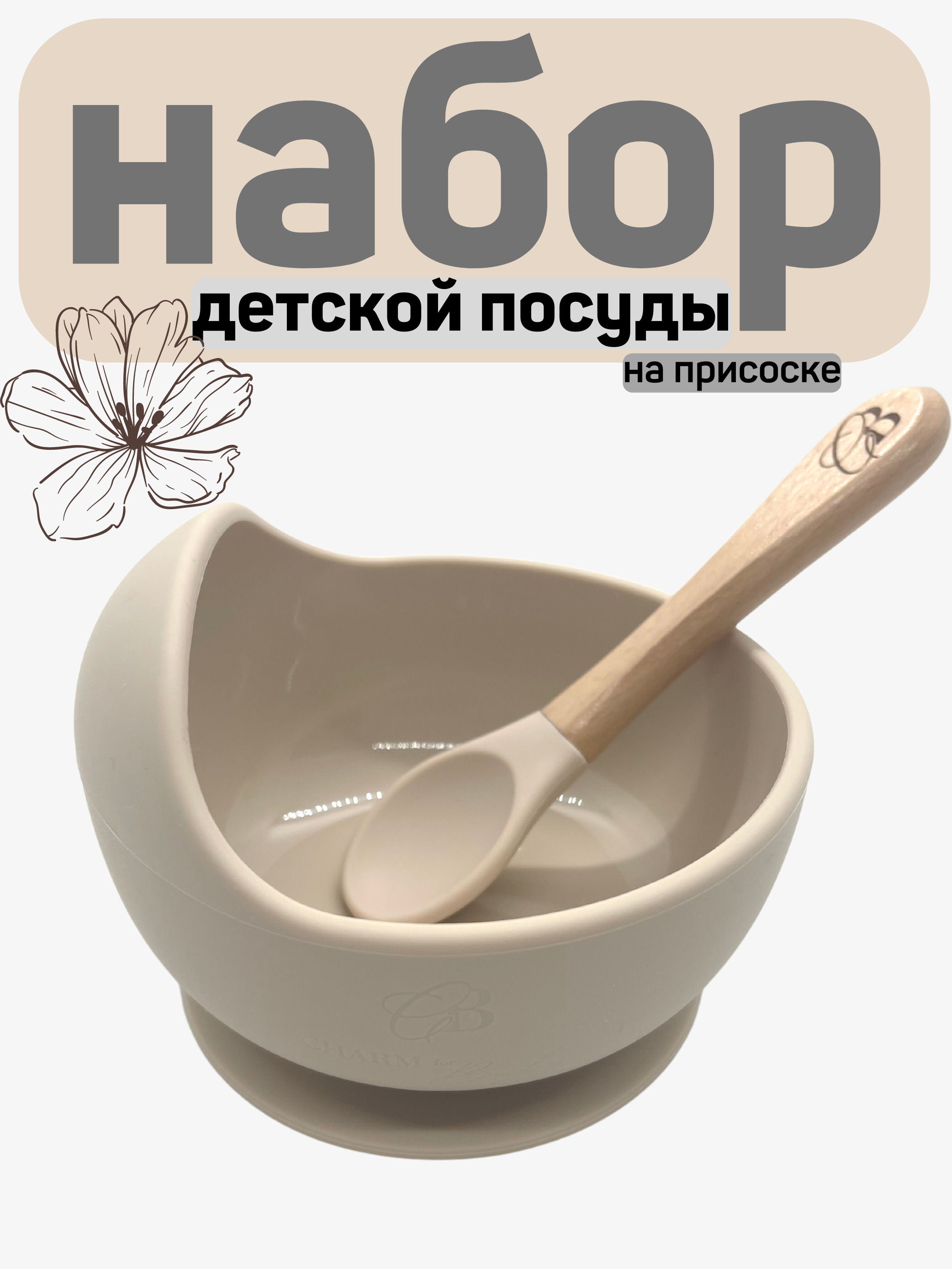 Силиконовая тарелка детская на присоске / Набор для кормления / Ложка для кормления / детская посуда