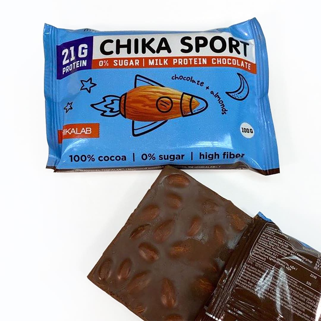 Chikalab Шоколад протеиновый без сахара CHIKASPORT "Молочный с миндалем" 4 плитки по 100 грамм