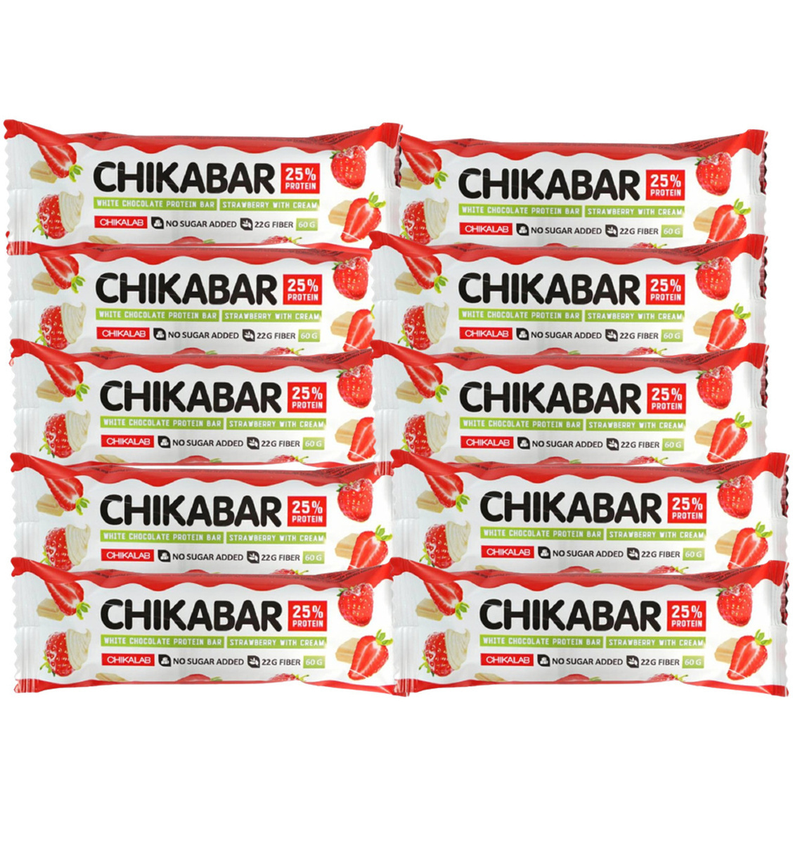 Протеиновый батончик Chikalab Chikabar Клубника со сливками, 10 шт