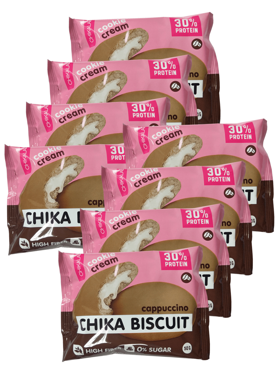 Chika Biscuit протеиновое печенье с начинкой Chikalab, 8x50г (капучино) / Bombbar бисквит без сахара