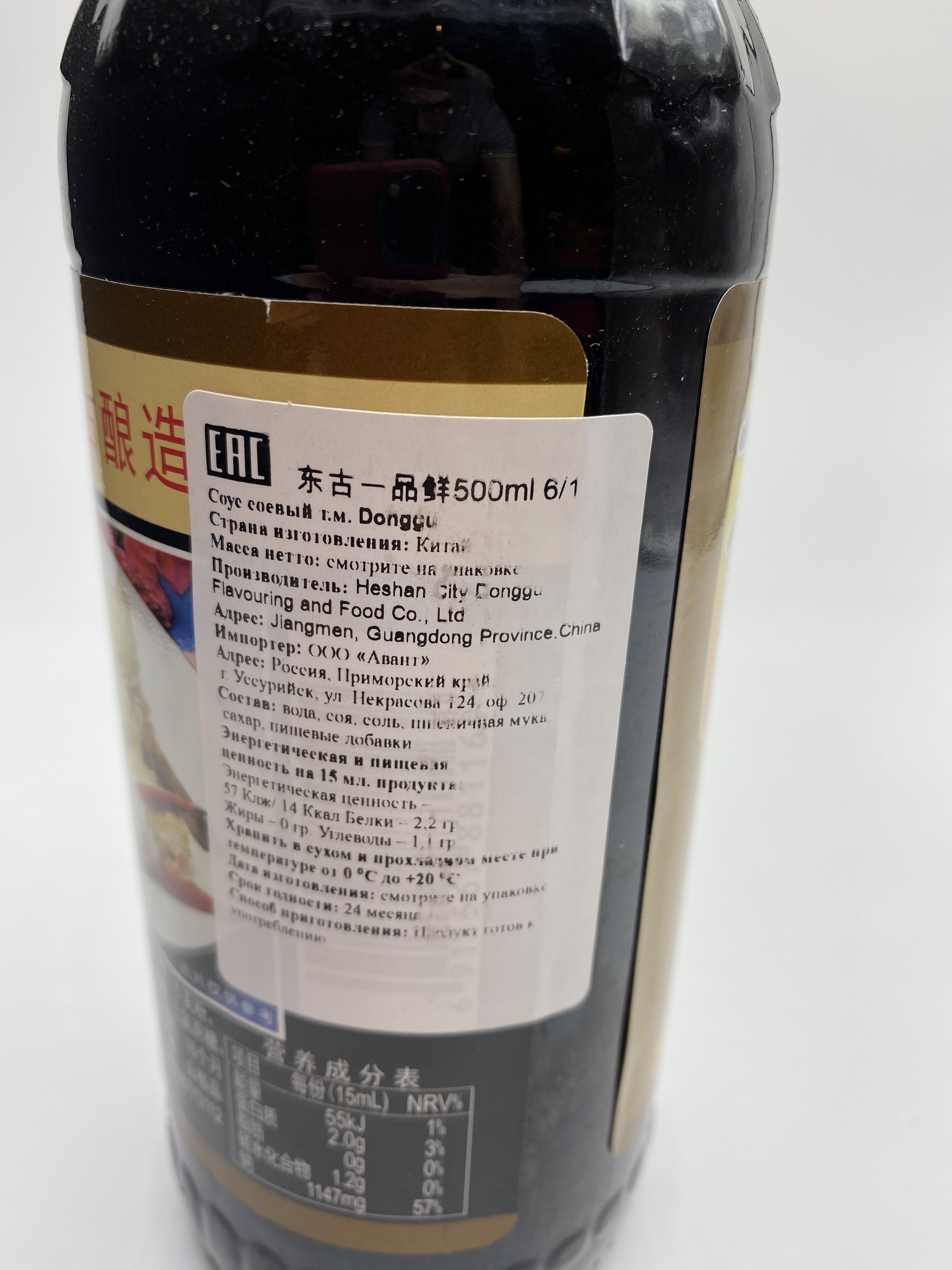 Китайский оригинальный соевый соус к морепродуктами DONGGU, 500мл