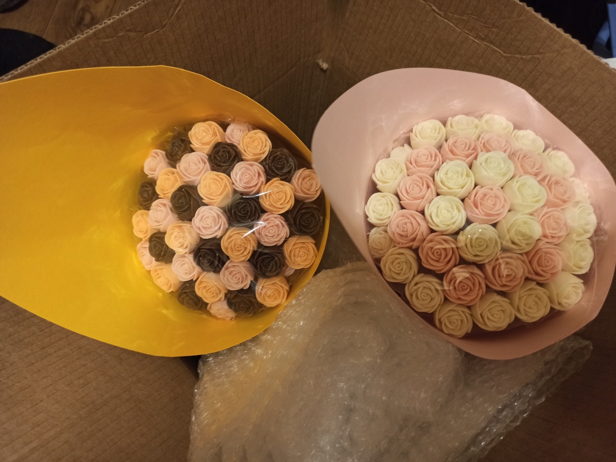 19 шоколадных роз в букете от CHOCO STORY- Сладкий разноцветный микс в яркой упаковке