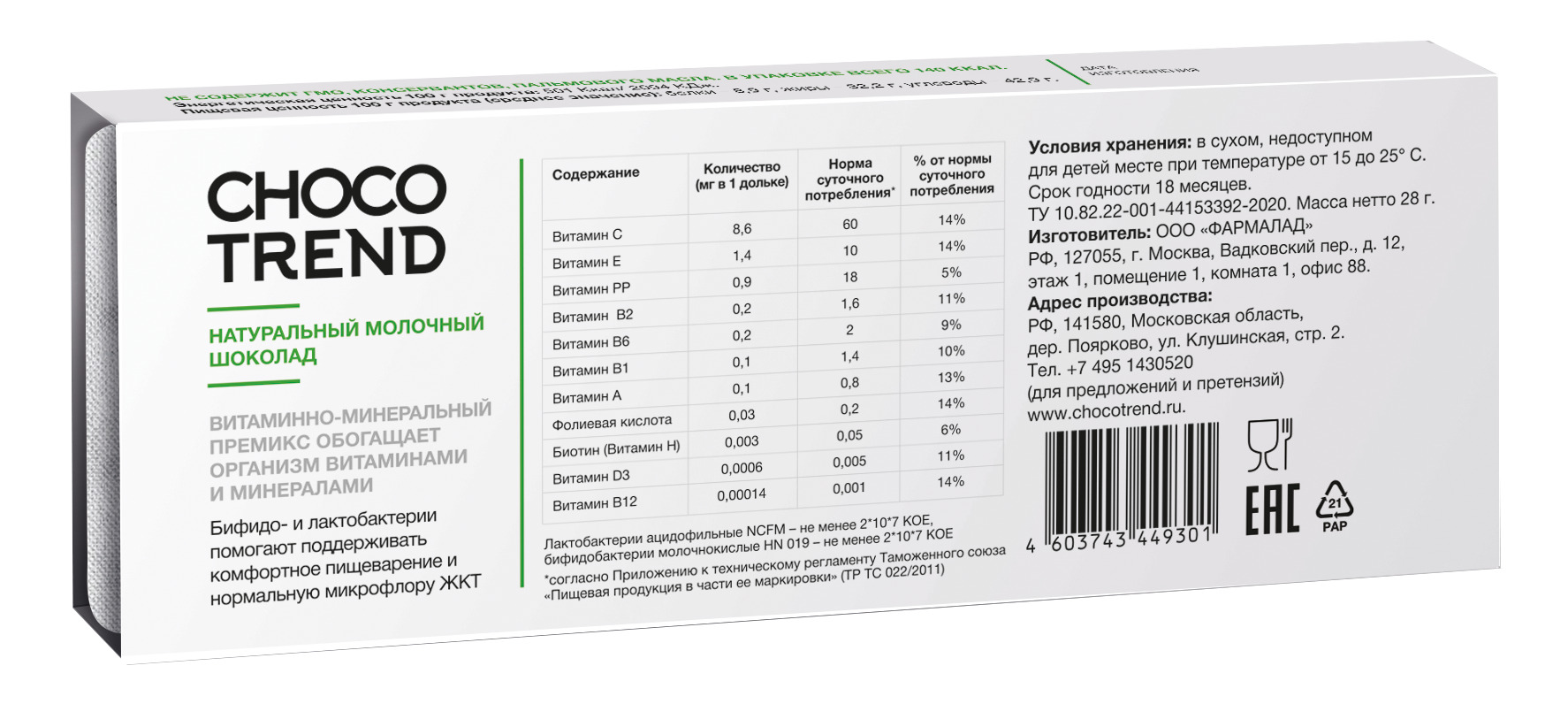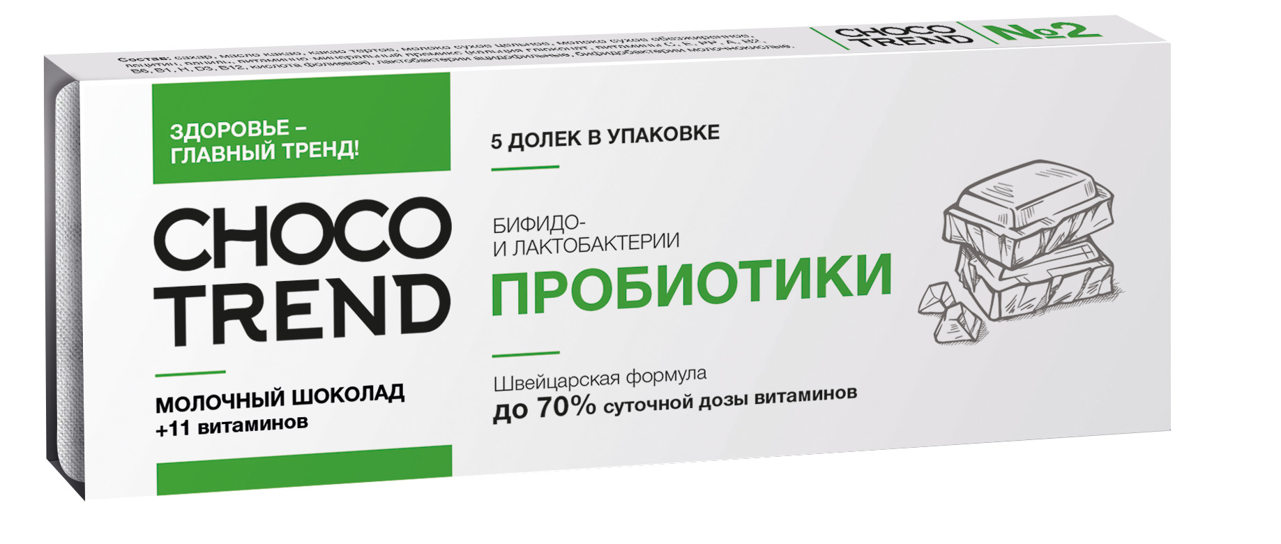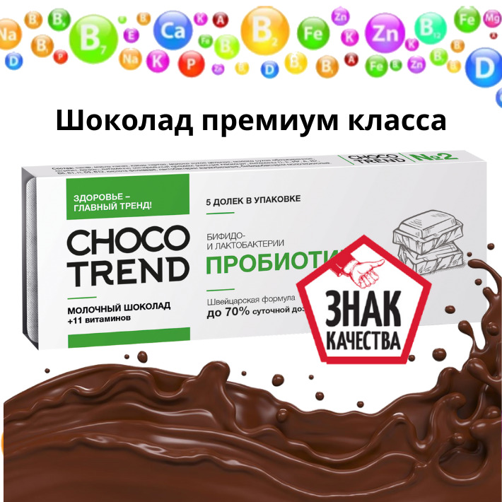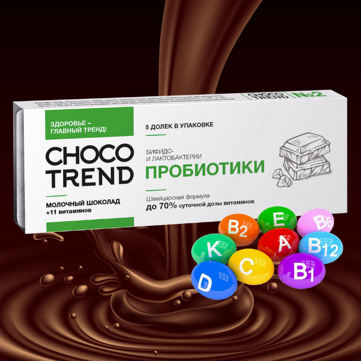 Шоколадные пастилки с витаминами и биоактивными ингредиентами CHOCOTREND №2 Пробиотики