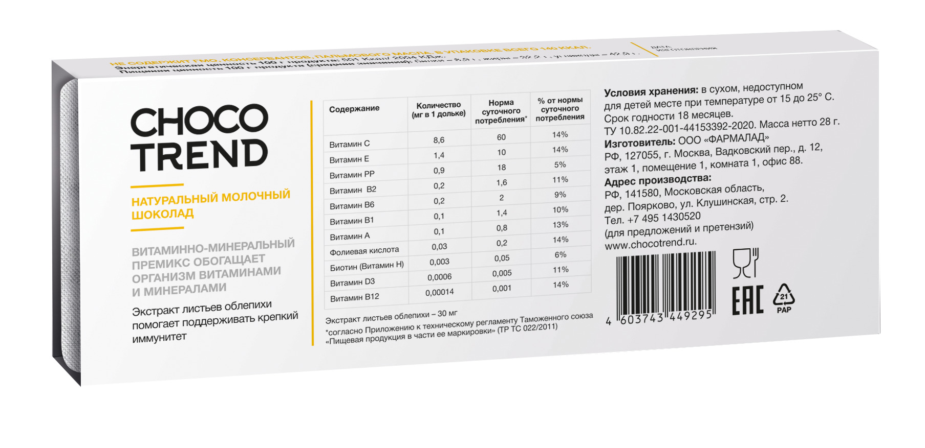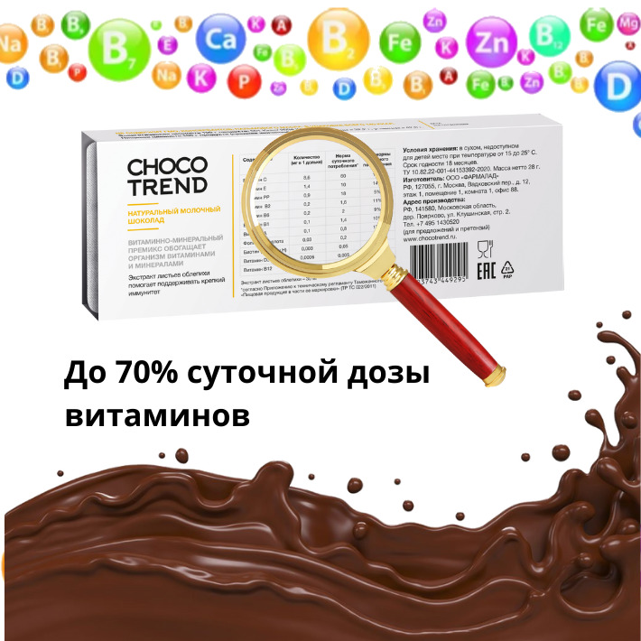 Шоколад с витаминами и биоактивными ингредиентами CHOCOTREND №1 Иммунитет