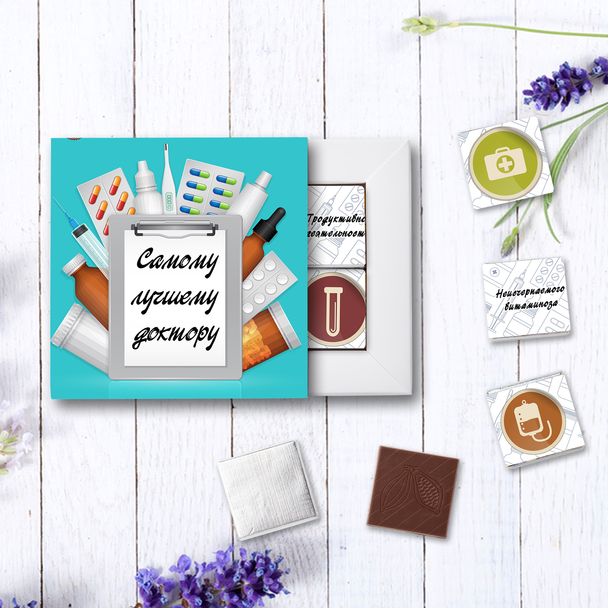 Шоколадный набор "Самому лучшему доктору, врачу", 12 шоколадок по 5 гр с пожеланиями