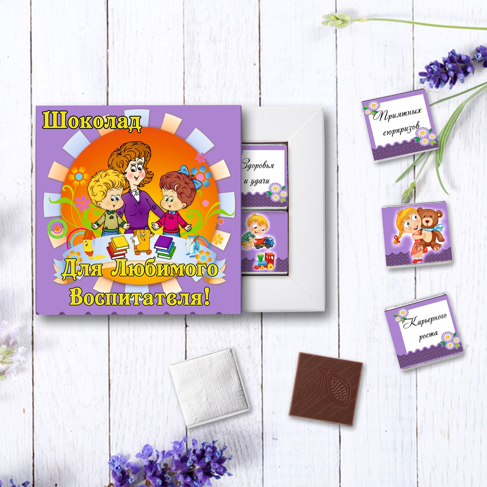 Шоколадный набор "Для любимого воспитателя" 12 шоколадок по 5 гр с пожеланиями