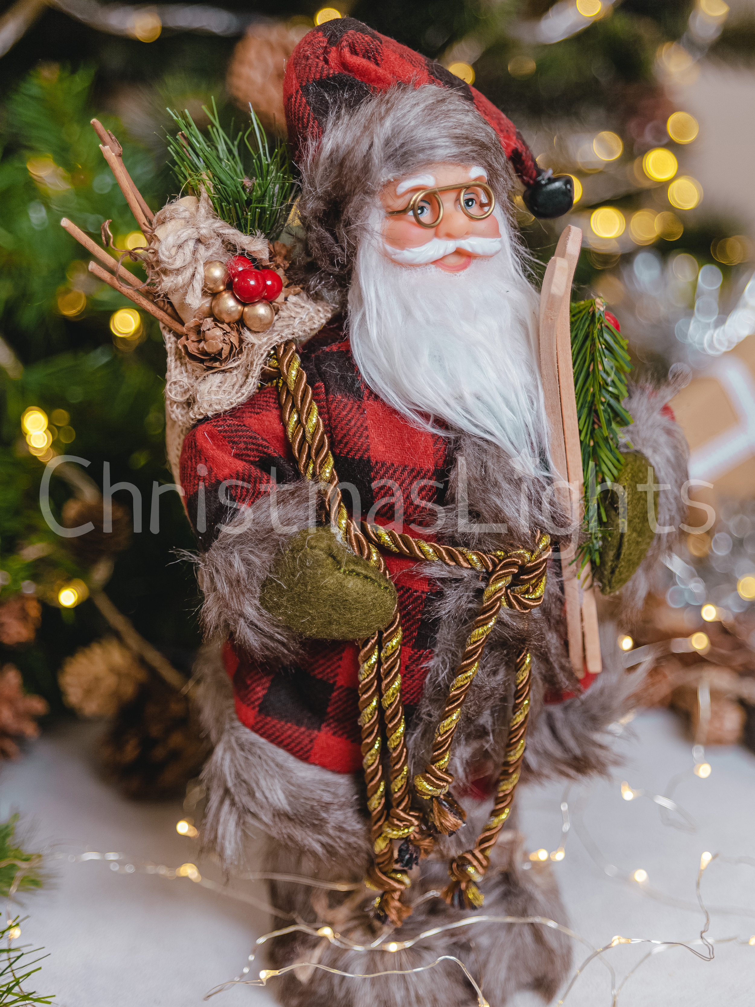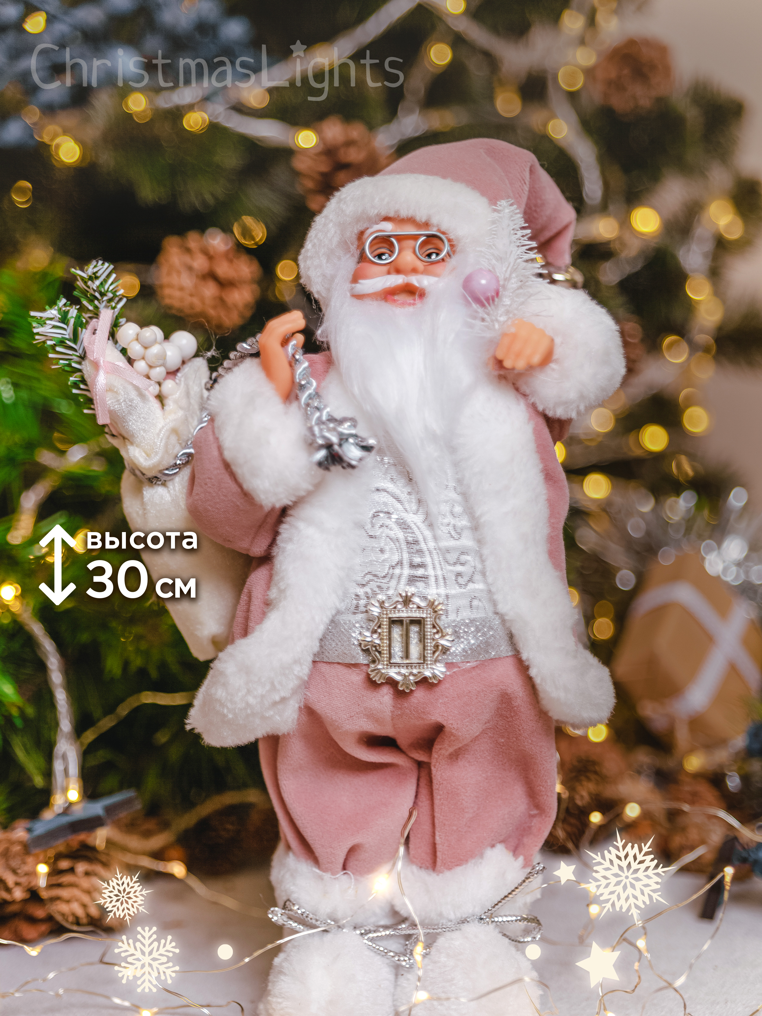 Фигурка новогодняя, Игрушка под ёлку Christmas Lights, Дед мороз, высота 30см, длина 15 см