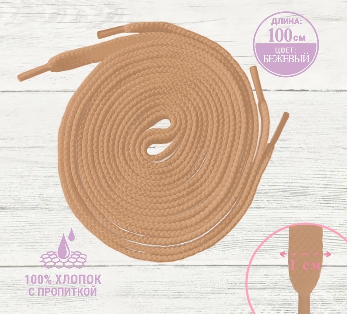 Шнурки для обуви, охра, 120 см, круглые, 1 пара (2 шт)