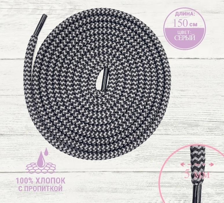 Шнурки для обуви, серые, 150 см, круглые, 1 пара (2 шт)