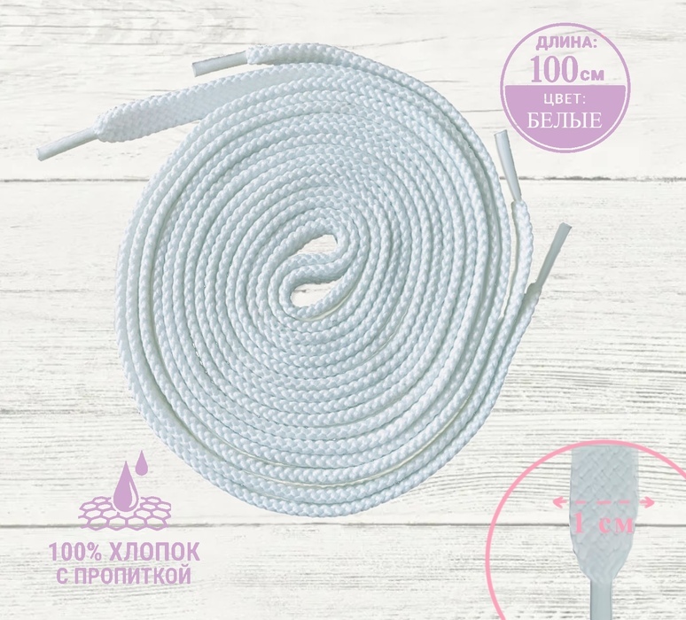 Шнурки для обуви, белые, 100 см. 1 пара (2 шт)