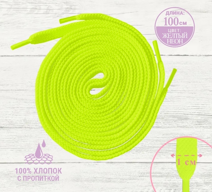 Шнурки для обуви, Кислотно-желтые , 100 см. 1 пара (2 шт)