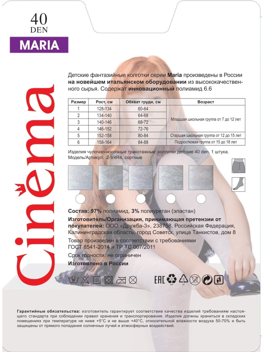 Колготки Cinema Чёрный, 40 den, 1 шт
