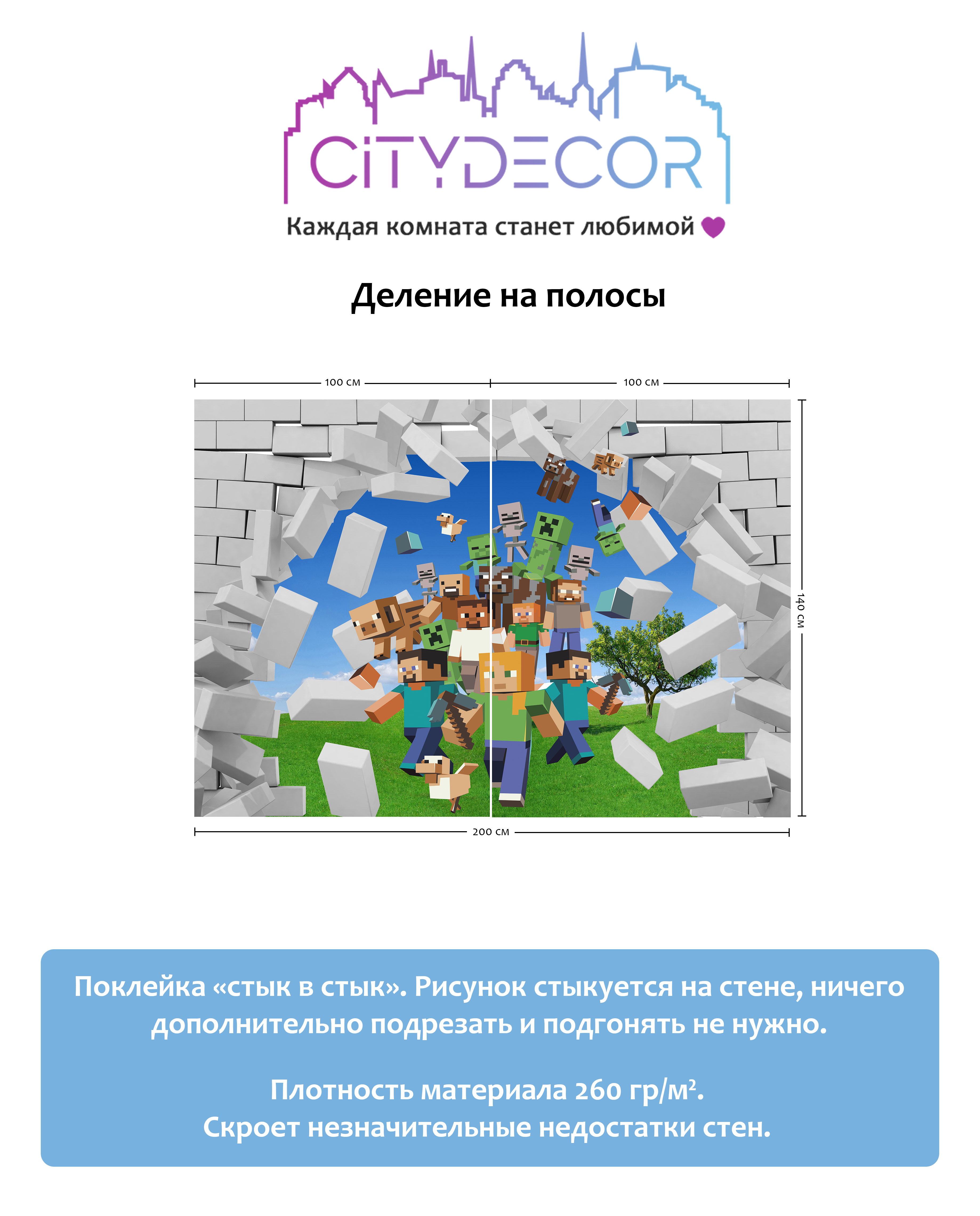 Фотообои Citydecor Майнкрафт 200x140 см (флизелиновые с виниловым покрытием)