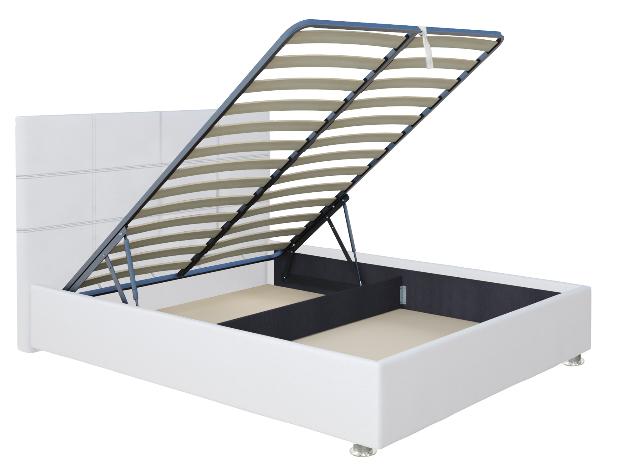 Двуспальная кровать Holla с Подъемным механизмом Белая экокожа, 160х200 см, CityFlex
