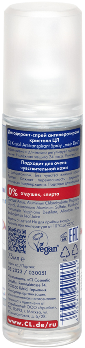 CL Дезодорант-спрей антиперспирант КРИСТАЛЛ, 75 мл