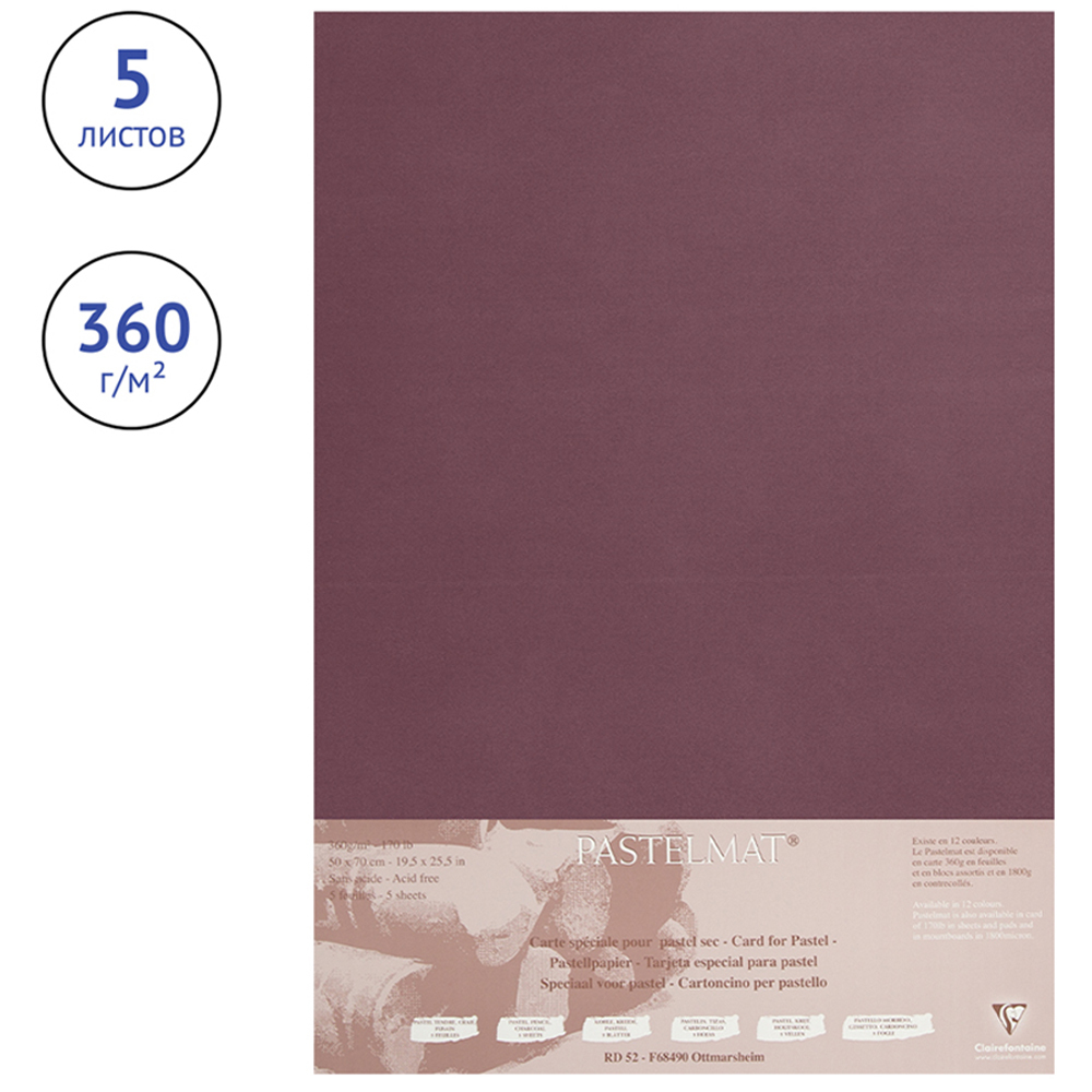 Бумага для рисования Clairefontaine Pastelmat, для пастели, 500 х 700 мм, 360 г/м2, винный, 5 листов