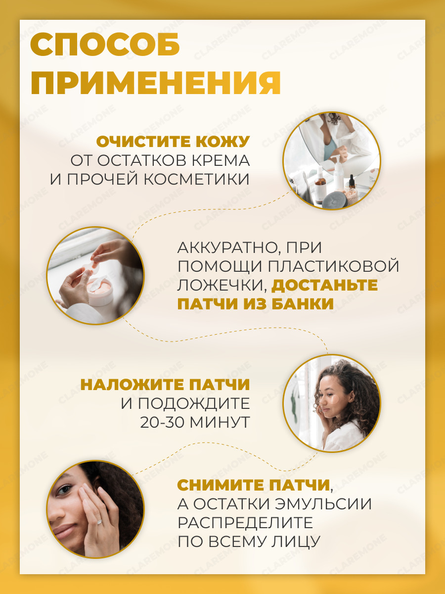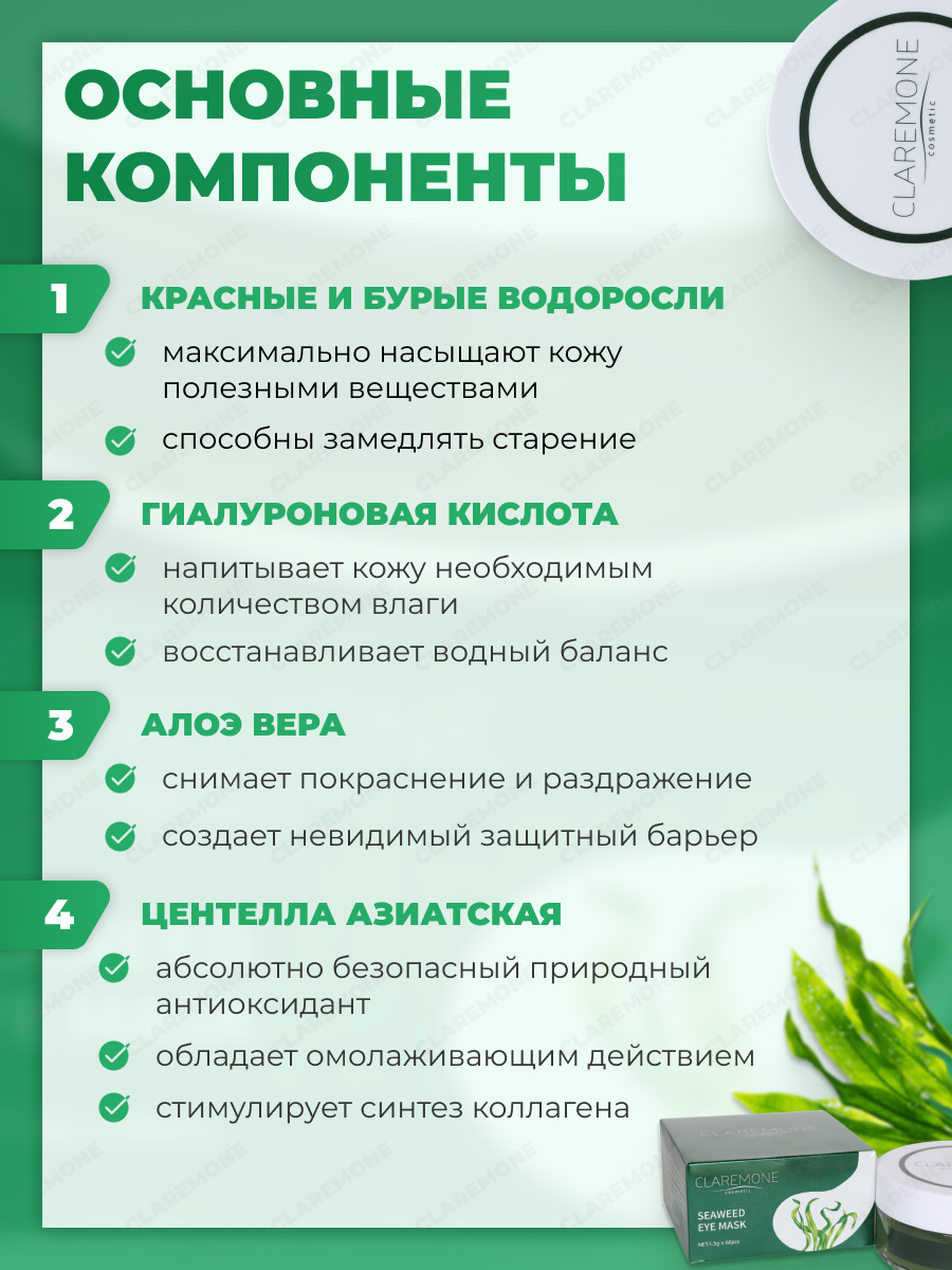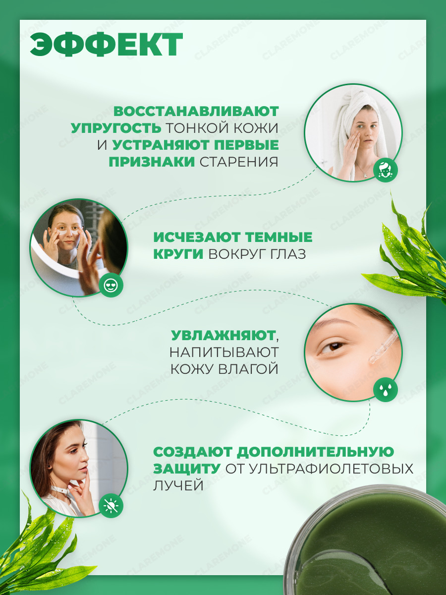 CLAREMONE Патчи для глаз гидрогелевые с водорослями/ Патчи под глаза от морщин/ От отеков и темных кругов под глазами, 60 шт.