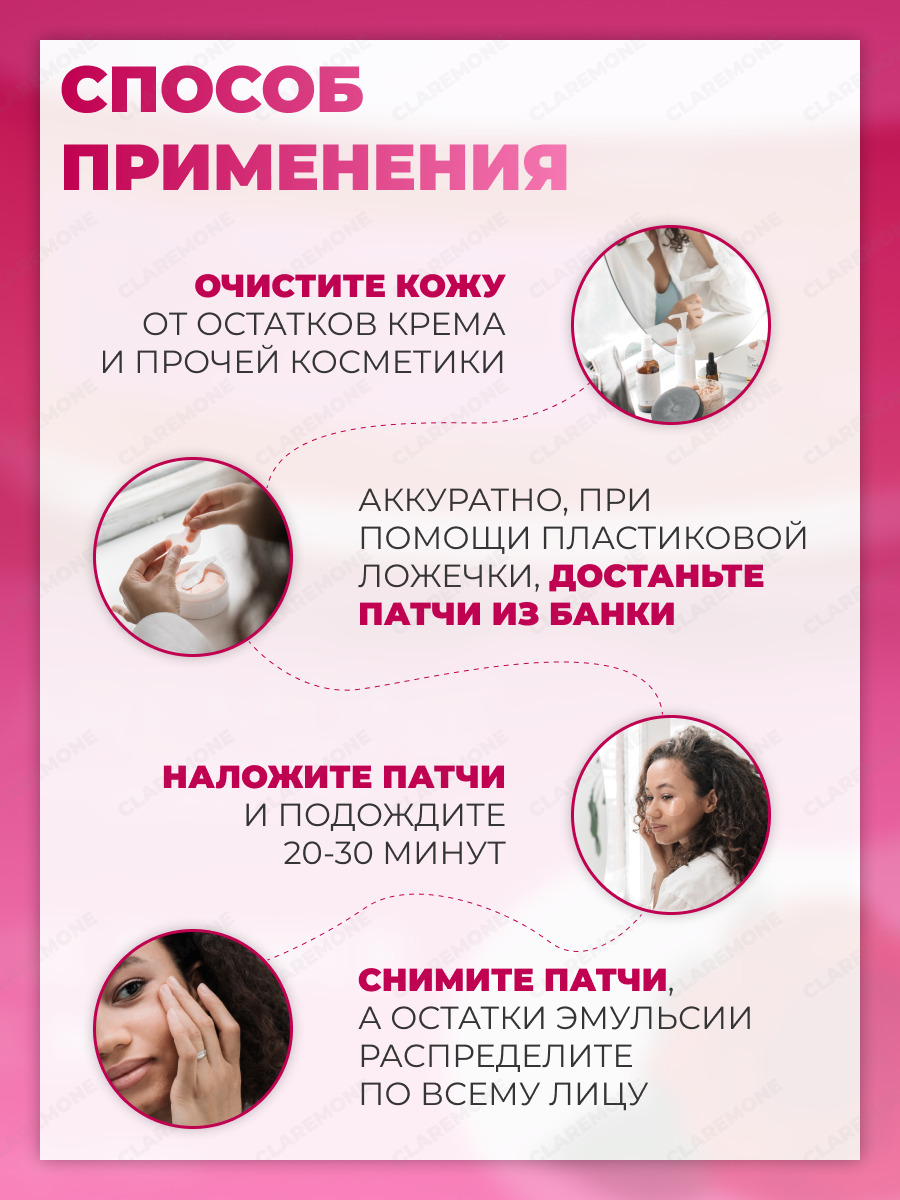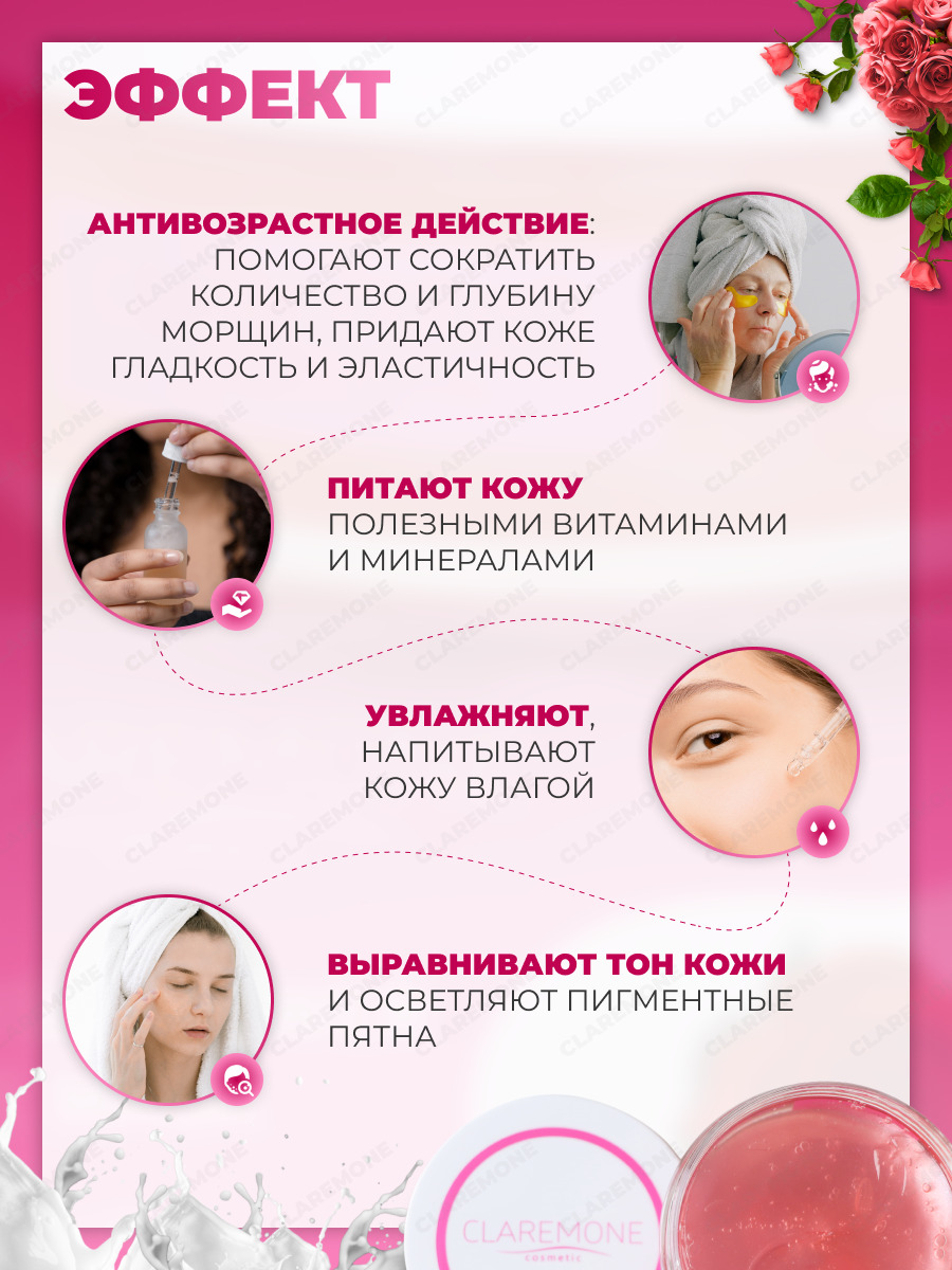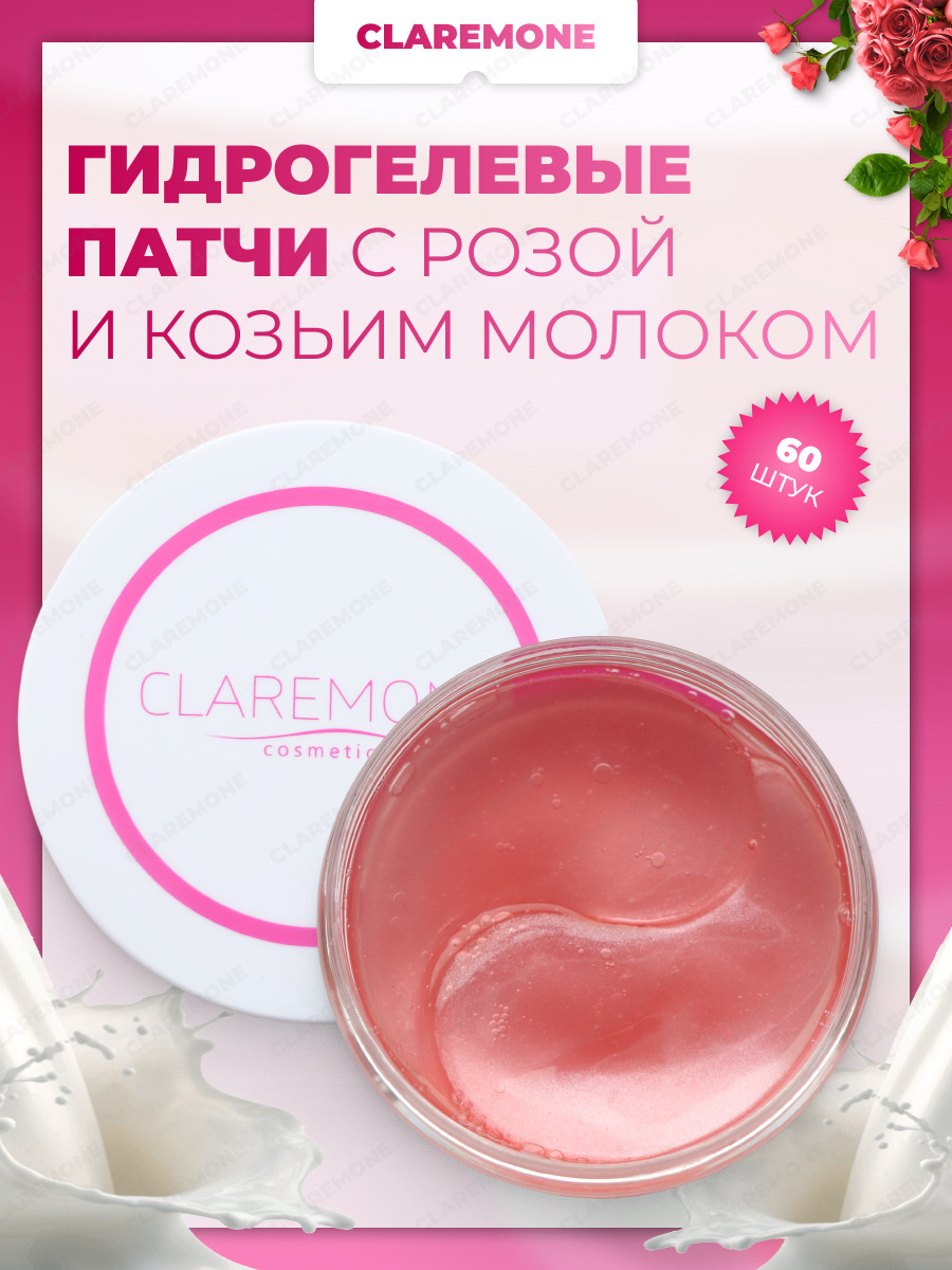 CLAREMONE Патчи для глаз. Гидрогелевые патчи под глаза омолаживающие с розой и козьим молоком от отеков и темных кругов, 60 шт.