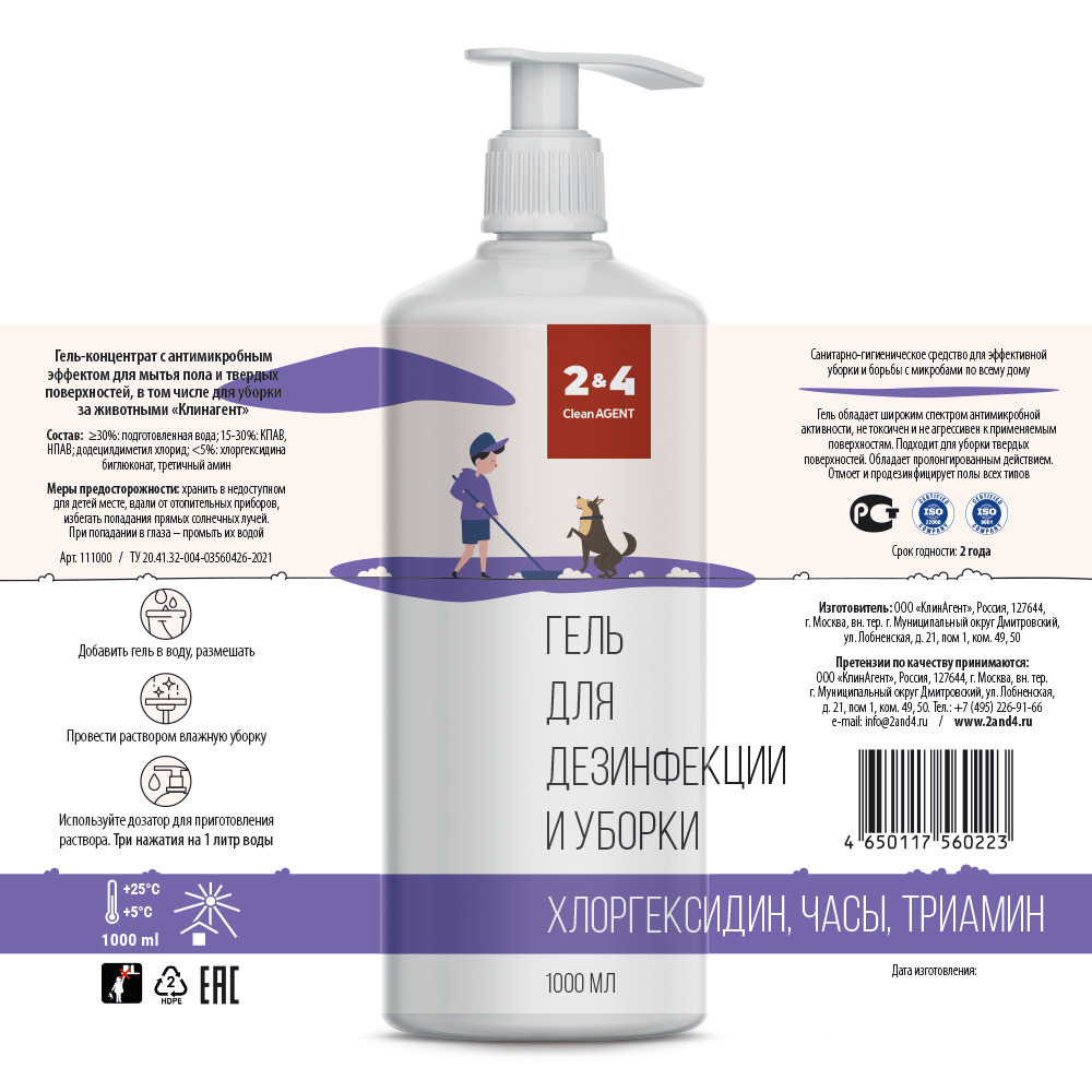 Пенное-дезинфицирующее моющее средство для уборки за животными Cleanagent, 150 мл.