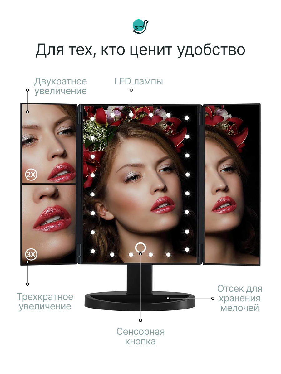 Зеркало косметическое CleverCare/раскладное мини-трюмо с подсветкой/настольное/увеличительное
