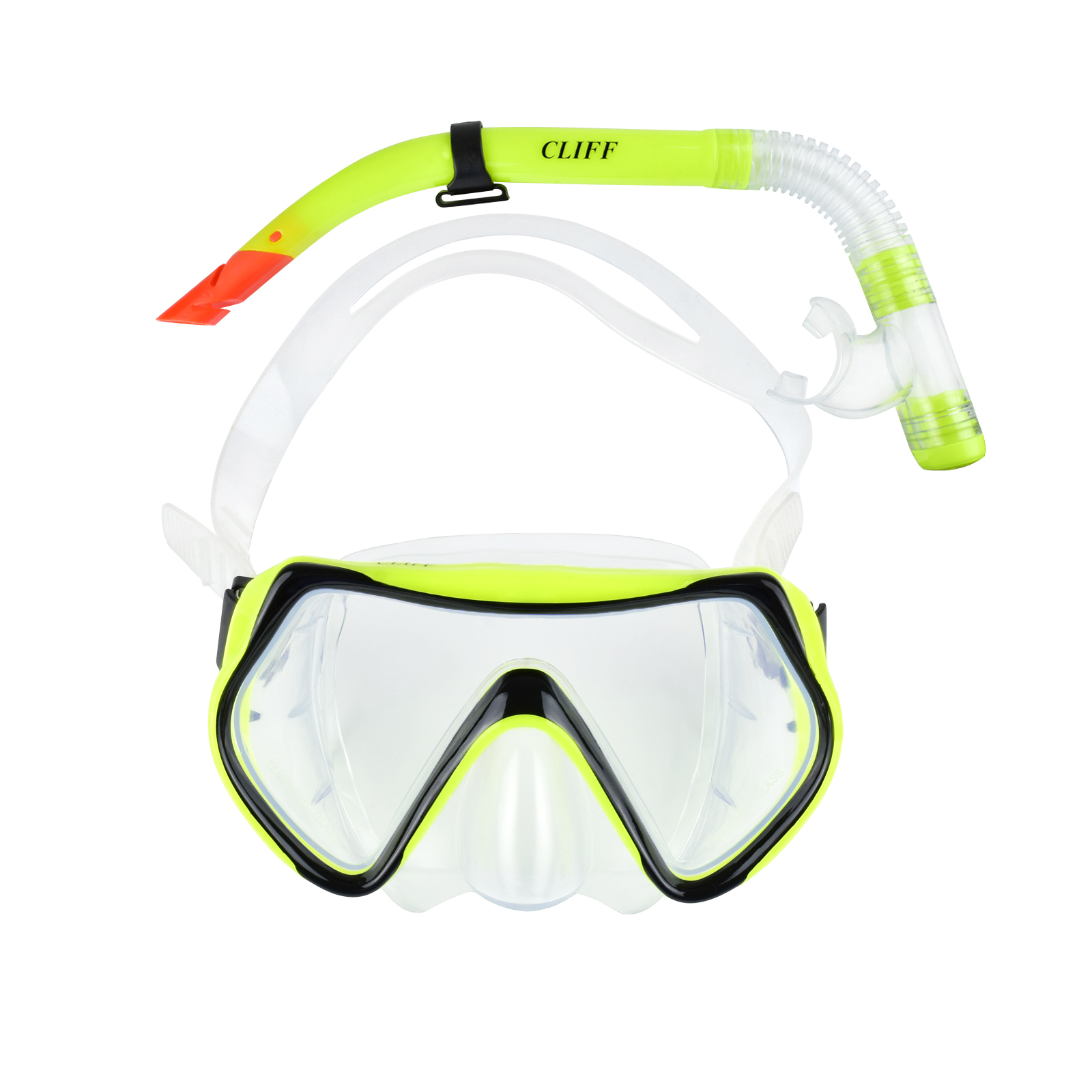 Маска для плавания с трубкой Cliff желтая / Набор для плавания.