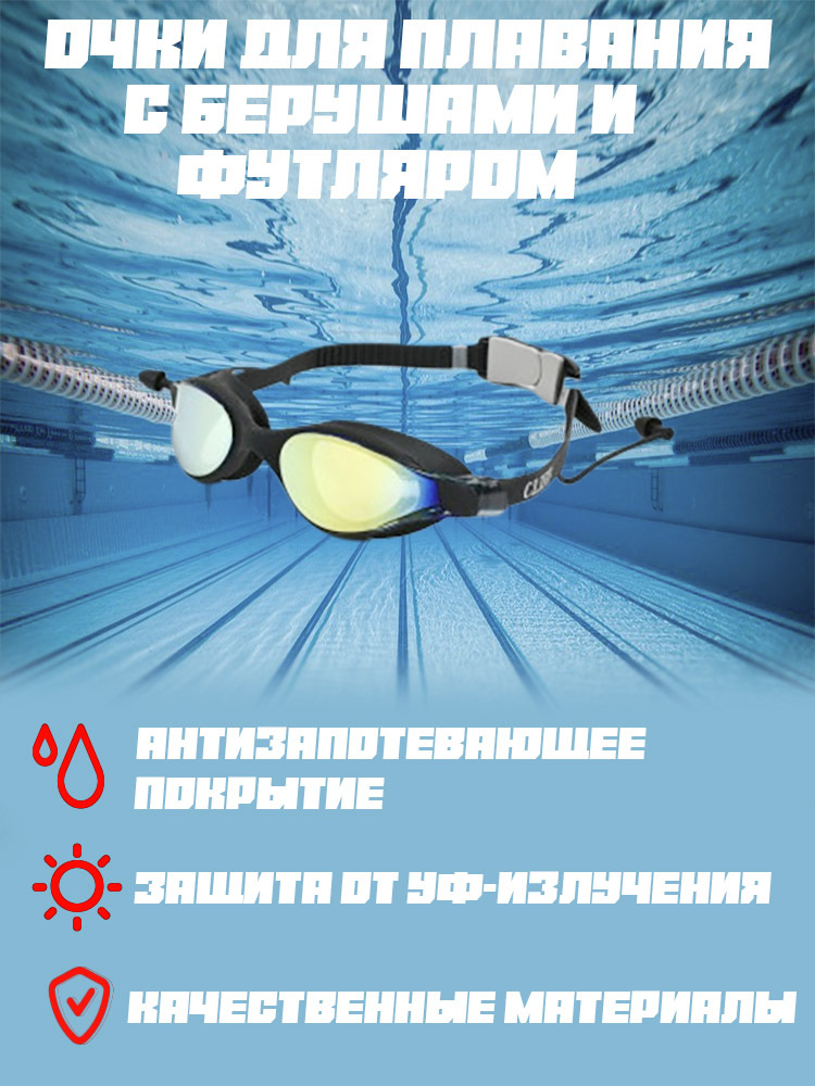 Очки для плавания взрослые с футляром и берушами Cliff 101M Чёрные