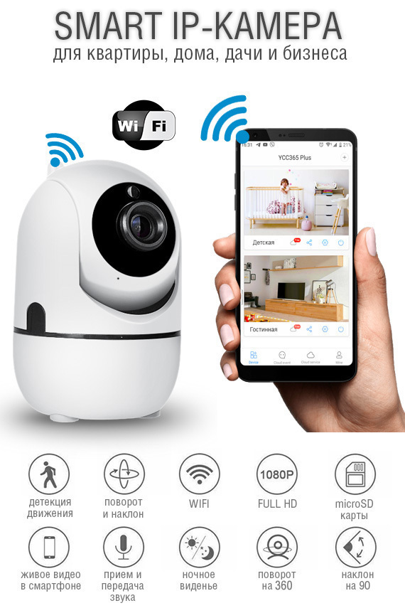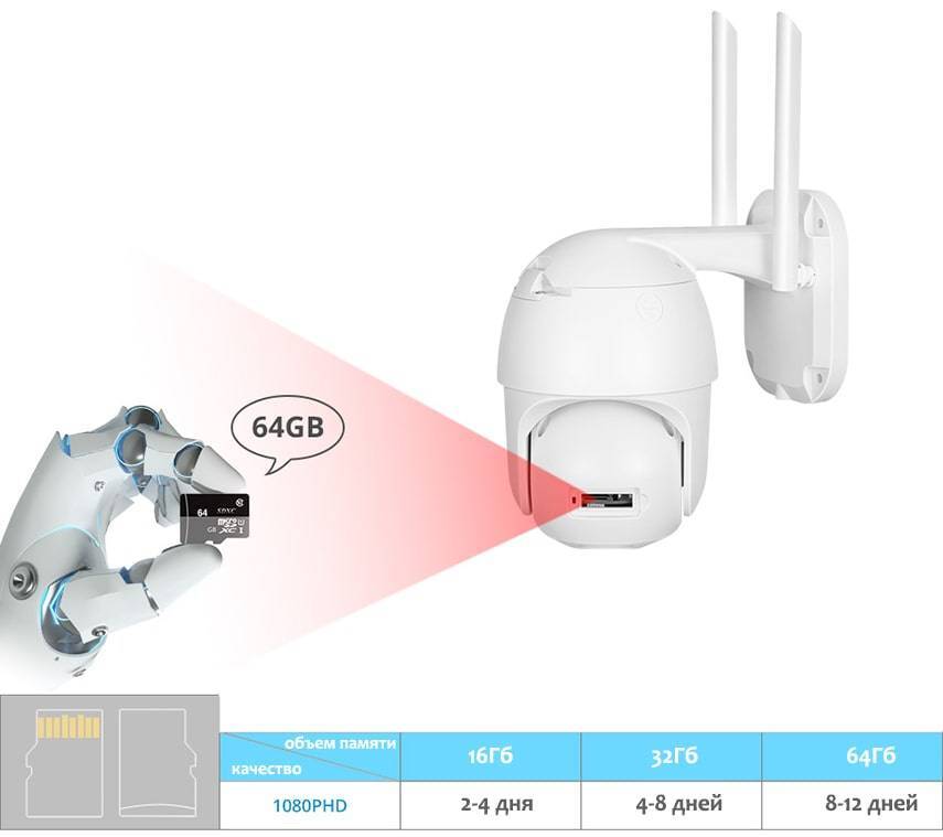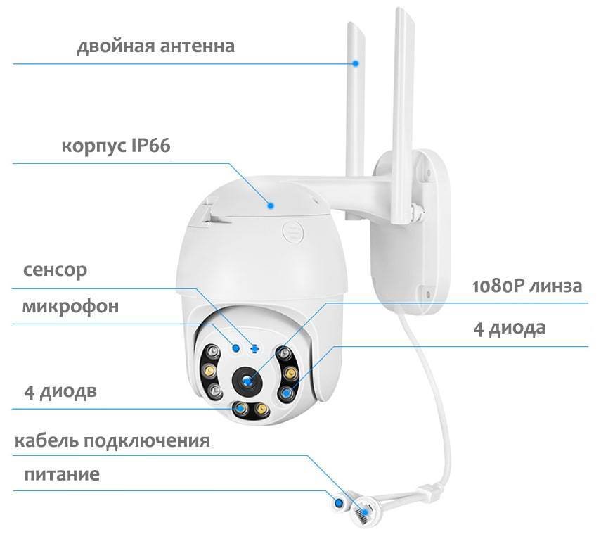 Уличная беспроводная поворотная камера наблюдения WiFi smart camera 1080P (C блоком питания)