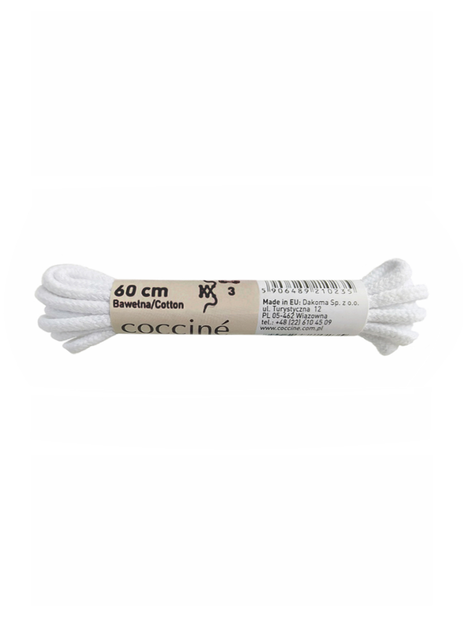 Шнурки хлопковые круглые тонкие Coccine, белый, 3 мм, 60 см
