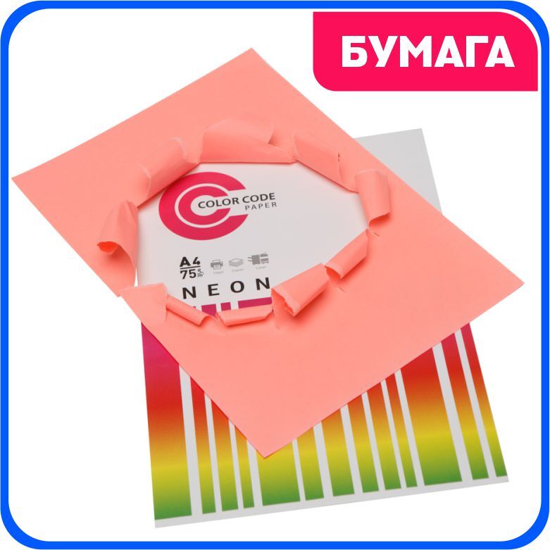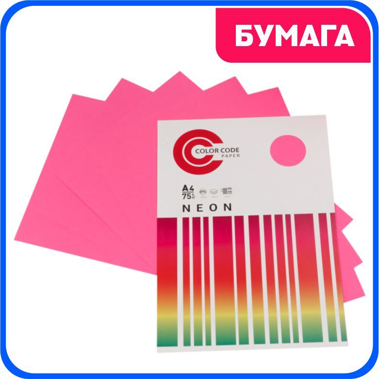 Цветная бумага для принтера/для печати/для творчества/офисная неон, малиновый 75г, А4, 50 листов