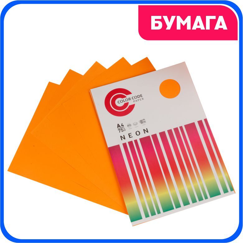 Цветная бумага для принтера/для печати/для творчества/офисная неон, оранжевый 75г, А4, 50 листов