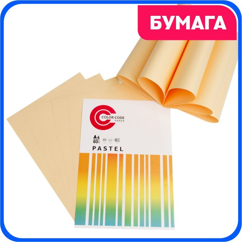 Цветная бумага для принтера/для печати/для творчества/офисная пастель,персик 80г, А4, 50 листов