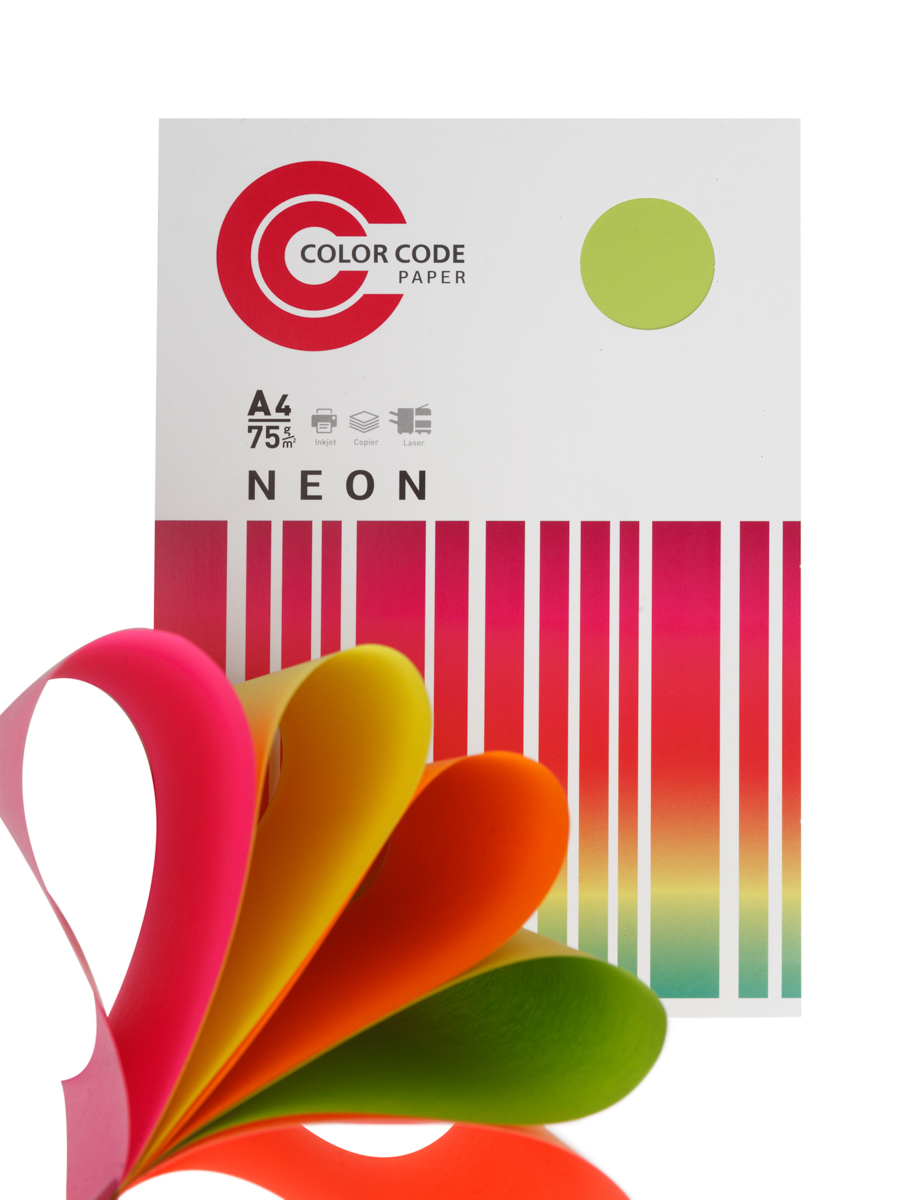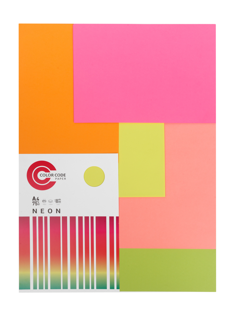 Цветная бумага для принтера/для печати/для творчества/офисная неон MIX, 75г, А4, 100 л (5цв х 20л)