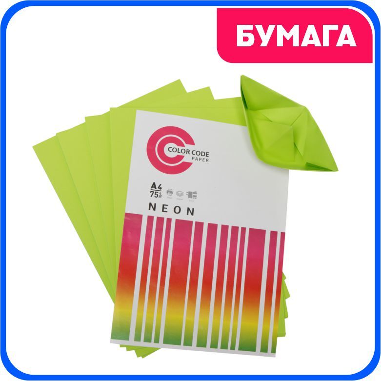 Цветная бумага для принтера/для печати/для творчества/офисная неон, зелёный 75г, А4, 50 листов